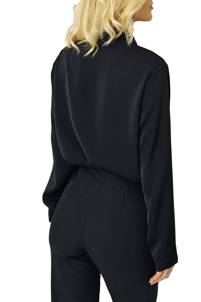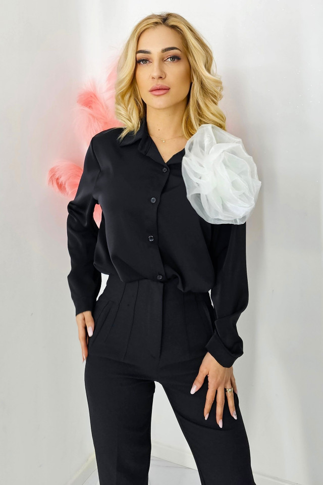 Camasa office Alizee, cu accesoriu floral din organza, Negru/Alb, Marime S/M