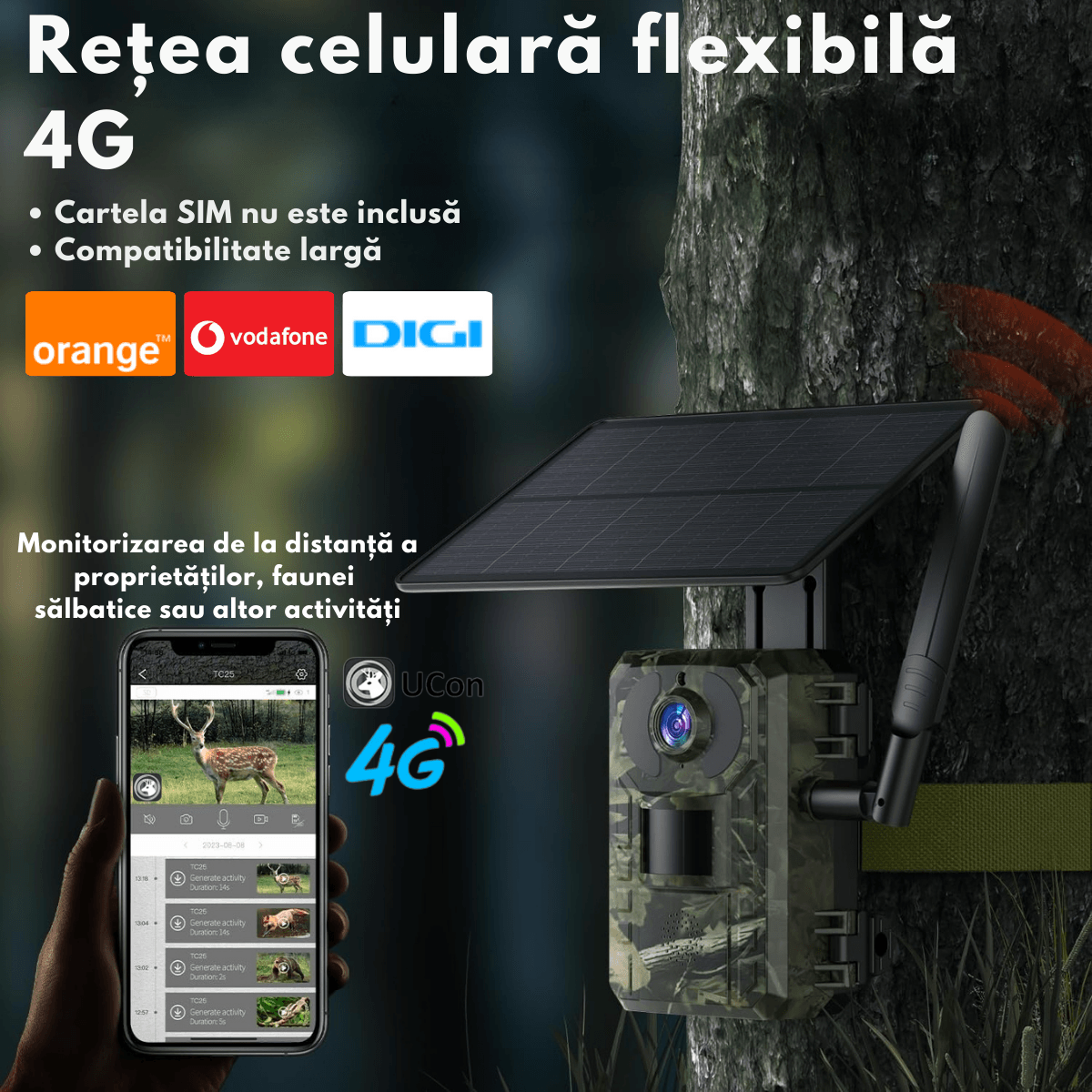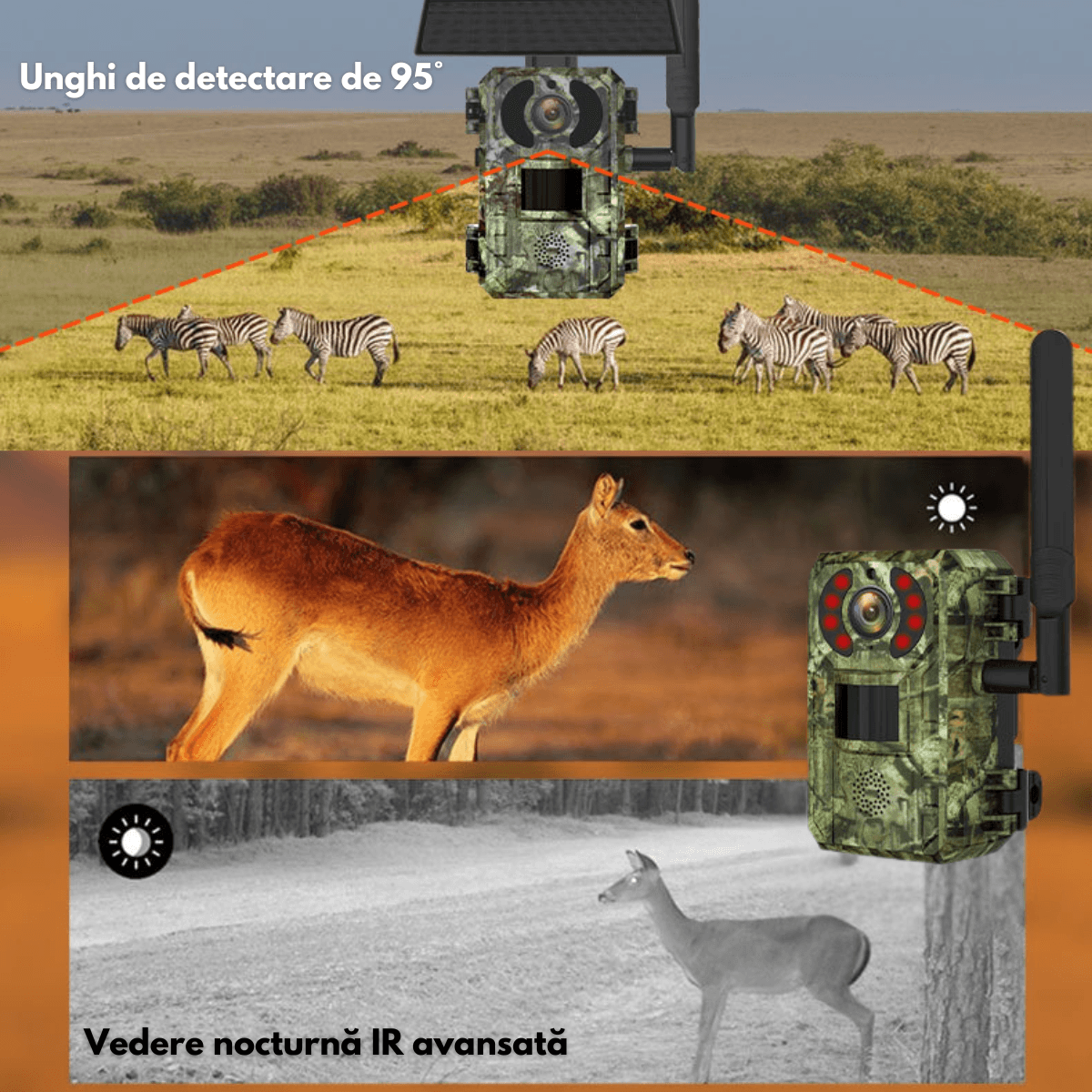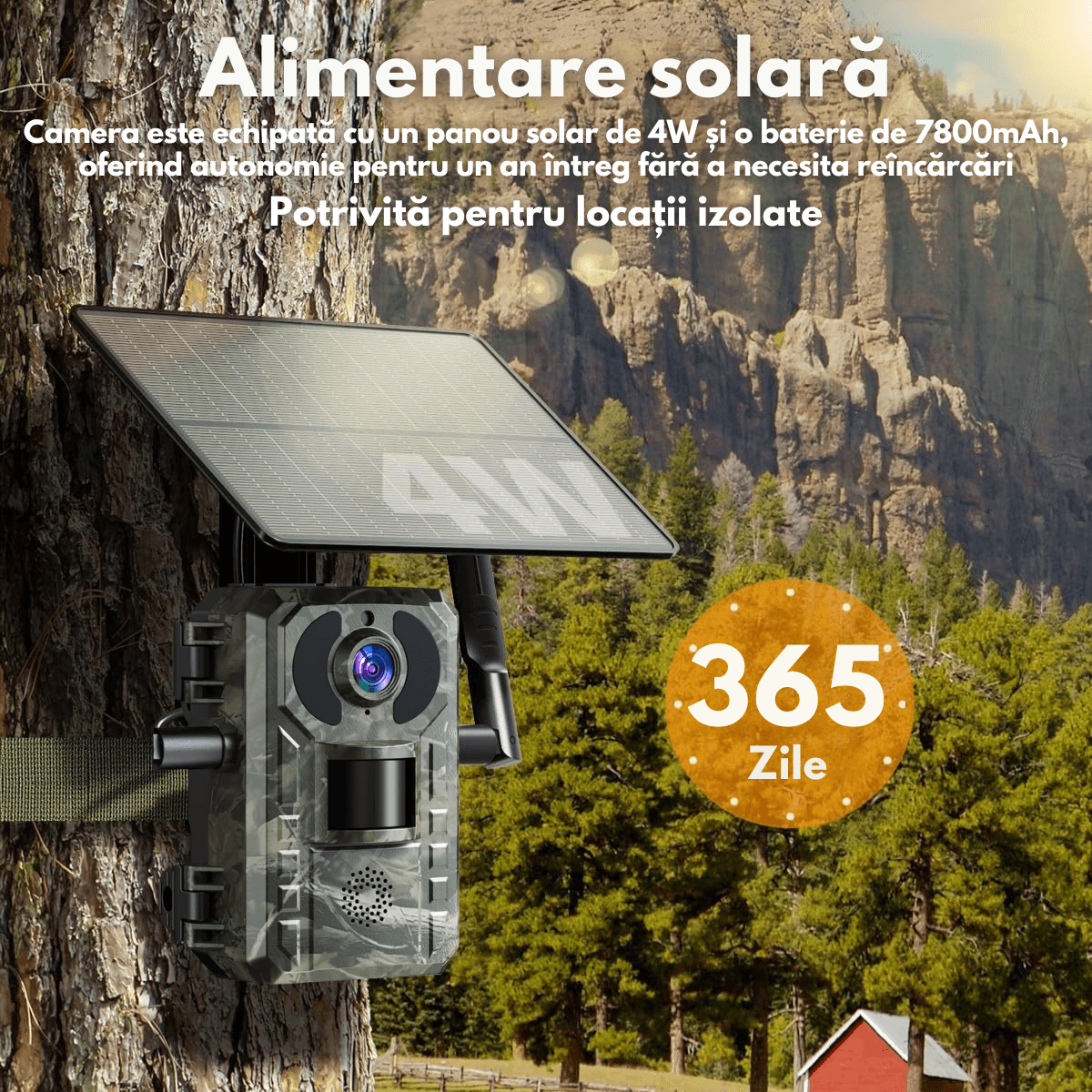 Transforma-ti monitorizarea exterioara si explorarea in natura cu Camera de Supraveghere Trail Solara 4G, echipata cu tehnologie de ultima generatie, proiectata pentru siguranta, performanta si eficienta energetica. Ideala pentru vanatoare, monitorizarea faunei salbatice sau supravegherea proprietatii tale, aceasta camera trail ofera functii avansate ce asigura imagini si videoclipuri clare, atat ziua, cat si noaptea. Caracteristici cheie ale Camerei de Supraveghere Trail: 1. Calitate Video Ultra HD si Rezolutie Avansata Captura imagini clare de 4MP si videoclipuri la o rezolutie de 2.5K QHD cu 30fps, chiar si in conditii de lumina scazuta. Echipata cu tehnologie No Glow Infrared Night Vision de 940nm, pentru capturi discrete si fara a speria animalele. 2. Viteza de Declansare Ultrarapida si Unghi Larg de Vizualizare Timp de declansare de 0.2s, ideal pentru captarea instantanee a miscarii. Lentila cu unghi de 95°, ce acopera o zona vasta, reducand riscul de a pierde momente importante. 3. Alimentare Solara si Durata de Functionare Extinsa Include un panou solar de 4W si o baterie reincarcabila de 7800mAh, garantand functionare continua pe o perioada de pana la 365 de zile fara a fi necesara schimbarea bateriilor. Sistem de alimentare duala, sustinut de o baterie suplimentara pentru un timp de functionare extins. 4. Conectivitate 4G si Notificari Instantanee Functioneaza cu retele 4G LTE, oferind acces in timp real la fluxurile video si notificari prin aplicatia mobila UCON. Primesti alerte instantanee pe telefon in cazul detectarii miscarii, indiferent de distanta. 5. Detectie de Miscare Avansata PIR Tehnologie PIR inteligenta pentru detectarea miscarilor cu precizie ridicata, pana la 25m. Capacitate de a diferentia intre miscarea umana si a animalelor, reducand alarmele false. 6. Capacitate de Stocare Extinsa Suporta carduri TF de pana la 128GB, perfect pentru inregistrarea unui volum mare de imagini si videoclipuri. Include un card micro SD de 32GB, astfel incat sa incepi utilizarea imediat. 7. Design Robust si Impermeabilitate IP66 Rezistenta la conditii meteo extreme, praf si ploaie datorita certificarii IP66. Ideala pentru utilizare in aer liber, in padure, munti sau gradini. 8. Functii Avansate de Inregistrare si Redare Suporta inregistrare video cu sunet, pentru a capta detalii suplimentare. 9. Versatilitate si Usurinta in Utilizare Potrivita pentru multiple scenarii: vanatoare, monitorizarea vietii salbatice, ferme sau supravegherea proprietatii. Usor de montat cu ajutorul curelei incluse sau al suportului special. De ce sa alegi Camera de Supraveghere Trail Solara 4G? Performanta Superioara: Capturi clare si detalii precise, atat pe timpul zilei, cat si al noptii. Economie de Energie: Functioneaza cu energie solara, eliminand necesitatea bateriilor frecvente. Control de la Distanta: Vizualizare live prin aplicatie mobila, cu notificari instantanee. Durabilitate Maxima: Rezistenta la intemperii si conditii extreme. Achizitioneaza acum Camera de Supraveghere Trail Solara 4G si bucura-te de tehnologia avansata care iti simplifica monitorizarea si protectia, oriunde ai nevoie! Despre acest produs: 【Viteza de declansare rapida de 0,2s si obiectiv de detectare de 95°】 Camera de urmarire detecteaza miscarea si se declanseaza instantaneu in doar 0,2s, capturand imagini fara nicio intarziere. Este dotata cu un obiectiv cu unghi larg de 95°, iar distanta de declansare este de pana la 25m in timpul zilei si 20m pe timp de noapte. 【Imagini HD de 4MP si videoclipuri 1296P】 Aceasta camera de urmarire utilizeaza o lentila si un senzor de inalta rezolutie pentru a captura imagini de 4MP chiar si in intuneric total, oferind videoclipuri clare de 1296P la 30 fps cu sunet. Perfecta pentru profesionistii in vanatoare. (Include card SD de 32GB). 【Vedere nocturna cu infrarosu fara stralucire】 Camera de vanatoare este echipata cu o tehnologie avansata de vedere nocturna, cu functii de detectare automata si inregistrare pentru a captura cu usurinta activitatea animalelor salbatice pe timp de noapte. LED-urile infrarosii de 940nm si filtrul infrarosu elimina riscul de a speria animalele sau de a expune fotografiile. 【Alimentare solara si surse de alimentare duale】 Aceasta camera solara de urmarire are o baterie reincarcabila incorporata si un panou solar montat deasupra pentru reducerea consumului de baterie si protectia mediului. De asemenea, cu un pachet suplimentar de baterii, camera ofera o durata de functionare impresionant de lunga. 【Capacitate mare de stocare si rezistenta IP66 la apa】 Camera suporta carduri de memorie microSD de pana la 128GB si vine cu un card SD de 64GB inclus. Este clasificata IP66 pentru rezistenta la apa, iar garnitura de cauciuc protejeaza componentele interne de conditiile meteorologice severe sau frig extrem.