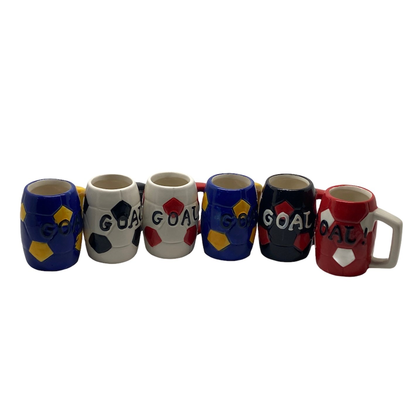 Amatorilor de Fotbal le oferim un set de 6 cănițe cu care pot sărbători victoriile echipei preferate alături de prieteni dragi. Cănițele sunt multicolore și sunt fabricate din material ceramic porțelanat. Culorile pot fi diferite în setul de 6 bucăți în funcție de stocul disponibil. Prețul afișat este pentru un set de 6 cănițe Volum 30ml Dimensiuni 6 x 4cm