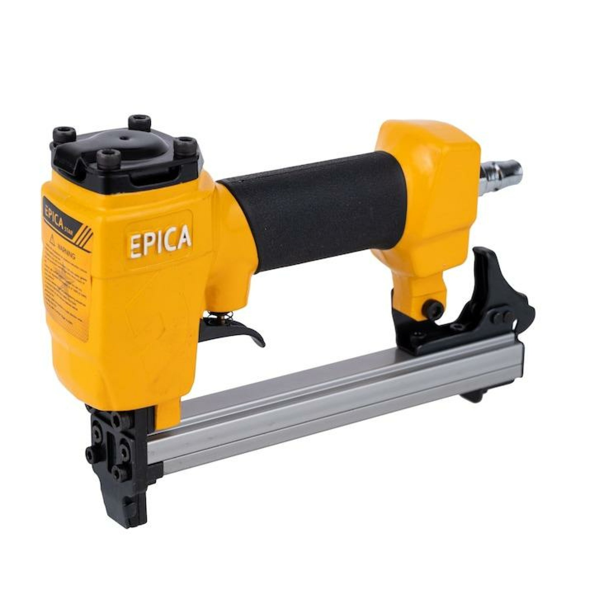 Capsator pneumatic Engros EPICA Star EP-50501 - Fixare rapidă și puternică pentru aplicații profesionale Acest capsator pneumatic EPICA Star EP-50501 este un instrument robust și eficient, ideal pentru aplicații profesionale care necesită o fixare rapidă și puternică. Alimentat de aer comprimat, oferă o forță constantă și reduce semnificativ efortul utilizatorului în comparație cu capsatoarele manuale. Perfect pentru tapițerie, construcții, ambalare și alte aplicații industriale. Ideal pentru vânzarea en-gros datorită performanței sale ridicate și durabilității. Caracteristici principale Marcă: EPICA Star Model: EP-50501 Tip: Capsator pneumatic. Alimentare: Aer comprimat (necesită un compresor de aer). Presiune de lucru: De obicei între 60 și 100 PSI (verificați specificațiile produsului). Tipuri de capse compatibile: Potrivit pentru o gamă specifică de tipuri și dimensiuni de capse (de exemplu, capse cu coroană îngustă, coroană lată, cu sau fără spate). (Verificați specificațiile produsului). Capacitate magazie: Capacitate mare a magaziei pentru a reduce frecvența reîncărcării. Mecanism de declanșare: Poate avea diferite moduri de declanșare (contact, secvențial). (Verificați specificațiile produsului). Design ergonomic: Mâner confortabil pentru o prindere sigură și reducerea oboselii. Construcție robustă: Fabricat din materiale durabile pentru o utilizare îndelungată în medii solicitante. Port de evacuare a aerului ajustabil: Permite direcționarea aerului evacuat departe de utilizator. Greutate redusă: Pentru o manevrare ușoară. Avantaje: Viteză și eficiență ridicată: Permite fixarea rapidă a materialelor. Putere constantă: Alimentarea pneumatică asigură o forță constantă de batere. Efort redus pentru utilizator: Minimizează oboseala în timpul utilizării prelungite. Ideal pentru aplicații profesionale: Potrivit pentru sarcini repetitive și de volum mare. Durabilitate: Construcția robustă asigură o durată de viață lungă. Ideal pentru vânzarea en-gros: Un instrument esențial pentru diverse industrii.