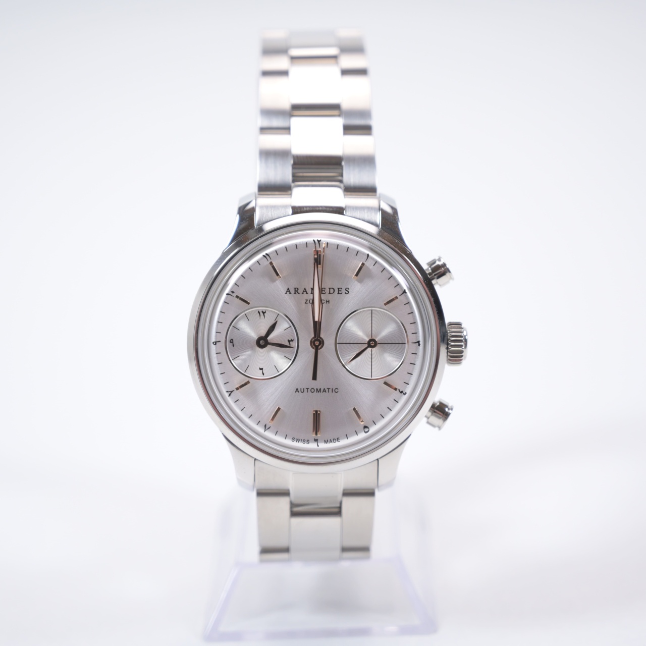 Tip afisaj: Analog Tip mecanism: Automatic Material carcasa: Otel inoxidabil Material bratara: Otel inoxidabil Material geam: Cristal safir