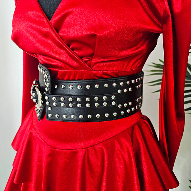 Centura cu catarama clasica, Teo, elastica, din piele ecologica cu detalii metalice, Negru Centura cu cataramă clasică Teo reprezintă un accesoriu versatil și elegant, perfect pentru a completa diferite tipuri de ținute. Emană încredere și rafinament, accentuând talia și evidențiind stilul tău unic și personalitatea puternică. Designul clasic al cataramei împrumută o notă de eleganță atemporală centurii Teo. Catarama adaugă un punct focal interesant și subliniază linia taliei într-un mod sofisticat. Aceasta poate fi reglată ușor pentru a obține potrivirea perfectă și un aspect bine proporționat. Detaliile metalice subliniază geometria centurii și adaugă un element de strălucire subtilă. Aceste detalii oferă o notă de contrast și adaugă profunzime designului, transformând-o într-un accesoriu care nu trece neobservat. Pentru o tinută de birou elegantă: Poartă centura Teo cu o fustă tip creion neagră și o cămașă albă elegantă. Pentru look casual-elegant: Asortează centura cu o pereche de blugi skinny și un top simplu în nuanțe neutre. Adaugă o jachetă subțire sau o cămașă din denim pentru un aspect lejer și rafinat. Stil urban chic: Combina centura cu o rochie neagră simplă sau cu imprimeu subtil. Completează cu o jachetă de piele ecologica din colectia fashionforyou și adidași albi pentru o notă de modernitate. Stil rock chic: Poartă centura cu o pereche de blugi skinny cu aspect uzat, din colectia fashionforyou. Adaugă un tricou cu imprimeu, o jachetă de piele și bocanci pentru un aspect rebel și chic. Caracteristici: - confortabila pentru utilizare indelungata - sistem inchidere: cu catarama - cusaturi delicate pe margine - confectionata partial din piele ecologica si textura elastica - decorata cu capse metalice Întreținerea corectă a centurii din piele ecologică este esențială pentru a menține aspectul și calitatea sa pe termen lung. - Evită să folosești substanțe chimice agresive sau apă în exces, deoarece acestea pot deteriora stratul de piele ecologică. - Evită să porți centura în zile ploioase sau în medii extrem de umede pentru a preveni deteriorarea sau decolorarea materialului. - Evită expunerea excesivă la căldură directă sau lumina soarelui puternică. Căldura excesivă poate cauza decolorarea sau deformarea pielii ecologice. - Dacă ai mai multe centuri, încearcă să le rotești pentru a evita uzura excesivă pe una singură. Aceasta va ajuta la menținerea aspectului lor pe termen mai lung.