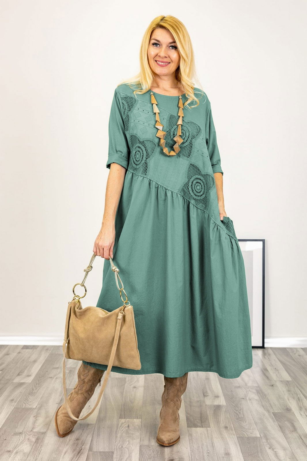 Cercei in forma de floare cu multe petale, verde mat