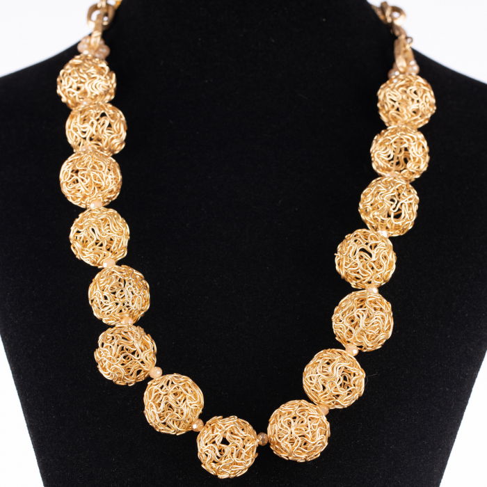 Colier metalic auriu cu bulgari sub forma de gheme din sarma