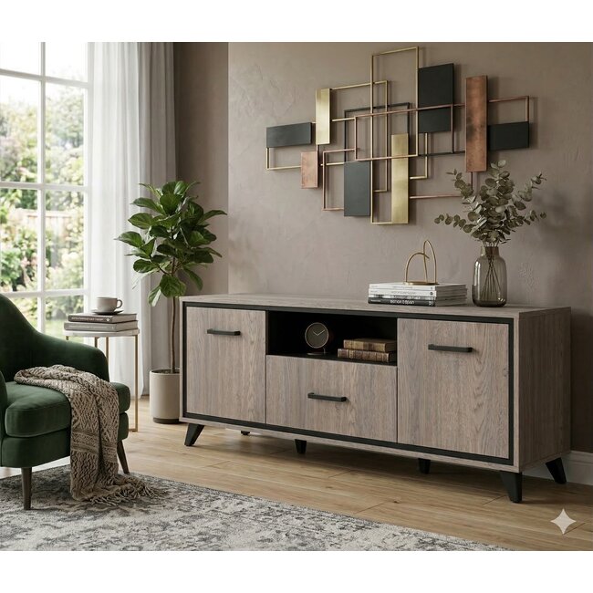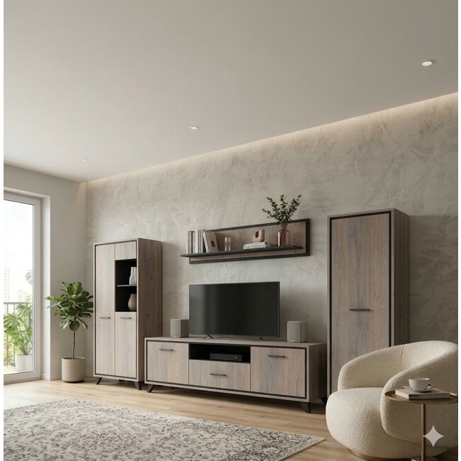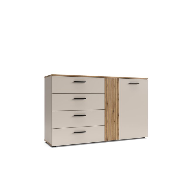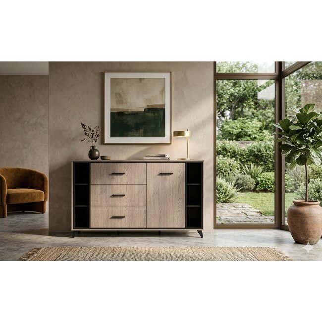 Comoda Tiramisu KOM2D este piesa de mobilier care îmbină funcționalitatea generoasă cu un design de ultimă oră. Caracterizată prin fronturile cu striații verticale fine și mânerele punctiforme discrete, această comodă aduce un plus de textură și eleganță în orice living sau dormitor modern. Interiorul este inteligent compartimentat în 4 rafturi spațioase, ideale pentru organizarea veselei, documentelor sau articolelor vestimentare. Picioarele înalte, metalice, nu doar că oferă stabilitate, dar permit și accesul ușor pentru curățenie (inclusiv pentru roboții de aspirare), păstrând un aspect aerisit al camerei. Compartimentare: 2 uși batante cu 4 spații de depozitare interioare. Detalii premium: Blat superior cu finisaj cald de lemn și picioare slim negre. Utilizare: Versatilă – poate servi ca bufet în dining, comodă în dormitor sau consolă în hol.