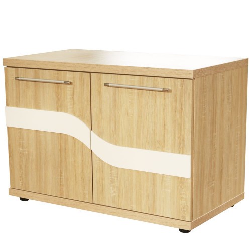 Comoda Sigma 2 usi. Dimensiuni (l x h x a): 900 x 627 x 485 mm Culoare: Sonoma cu MDF alb. Materiale folosite: Carcasa si usi din pal melaminat, MDF. *Nota: Schita de montaj nu se afla in interiorul coletului intre piesele de mobila. Schita de montaj o sa fie atasata pe spatele facturii.