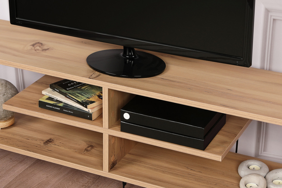 100% PAL Laminat GROSIME: 18 mmPicioare metaliceLatime: 120 cm Inaltime: 44,5 cm Adancime: 30 cmInaltime picior: 15 cm >Rafturi numeroaseNumar pachete: 234 x 124 x 10 cm / 9 kg (1 Bucata)18 x 18 x 15 cm / 0,8 kg (1 Bucata)Dimensiune Pachet: 124x34x25 cmGreutate totala mobilier: 9.8 kg