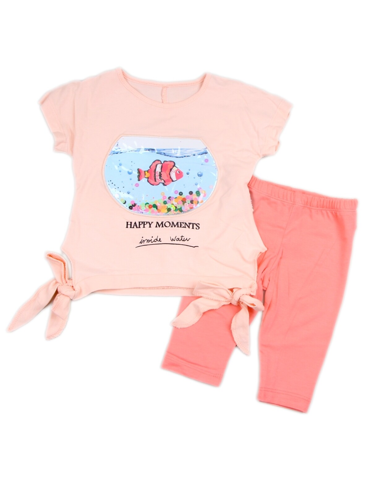 Compleu format din tricou frumos imprimat si pantaloni scurti. Material 100% bumbac.