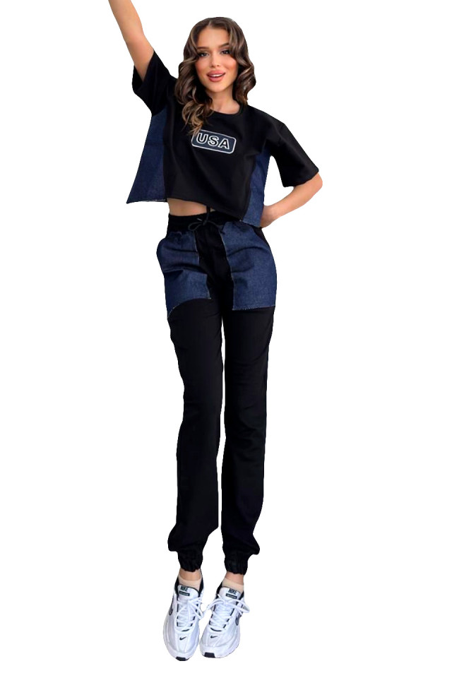 Compleu sport hibrid USA Dream, bicolor, tricou oversize inscriptionat si pantaloni cu panouri denim Alegerea perfectă pentru cei ce doresc să combine stilul urban cu confortul sportiv, ansamblul sport hibrid USA Dream este o declarație de originalitate și versatilitate în lumea modei. Tricoul oversize inscriptionat este elementul principal al acestui ansamblu, cu un design îndrăzneț și dinamic care reflectă energia și individualitatea purtătorului. Pantaloni cu panouri denim completează look-ul, oferind o combinație armonioasă între stilul casual și urban. Panourile denim adaugă o notă de textură și contrast, creând un aspect modern și cool care este perfect pentru activitățile de zi cu zi sau pentru ieșirile în oraș. Designul bicolor aduce un element de dinamică și versatilitate întregului ansamblu, permițându-ți să te exprimi liber și să ieși în evidență prin propriul stil. Fabricat din materiale de calitate și finisat cu atenție la detalii, compleul sport hibrid USA Dream este o alegere excelentă pentru cei care apreciază confortul, stilul și funcționalitatea într-o singură ținută. Indiferent dacă ești pe terenul de sport sau pe străzile orașului, acest complet sport hibrid îți va oferi un look cool și confortabil, făcându-te să te simți încrezător și în tendință în orice moment. Caracteristici compleu: - pantaloni lungi, lejeri, cu rejansa elastica in talie si la baza piciorului - inchidere cu snur si buzunare laterale din denim - tricou inscriptionat, oversize cu panouri laterale din denim - recomandarea noastra in raport calitate/pret - model prezent in mai multe variante cromatice Eticheta produsului conține informații esențiale referitoare la întreținerea și spălarea corectă a articolelor vestimentare. Imaginile Fashionforyou au caracter informativ, iar nuanta, tonul si intensitatea culorii pot varia in functie de monitor/ecran telefon.