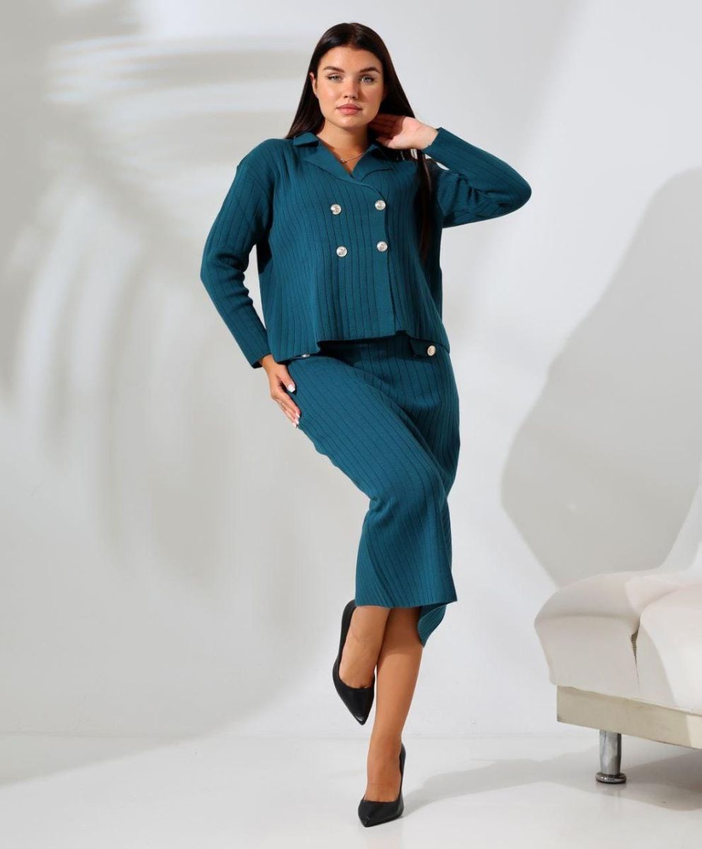 Compleu Tricot Femei Engross, Doua Piese, Fusta, Nasturi, Verde, MN-5590