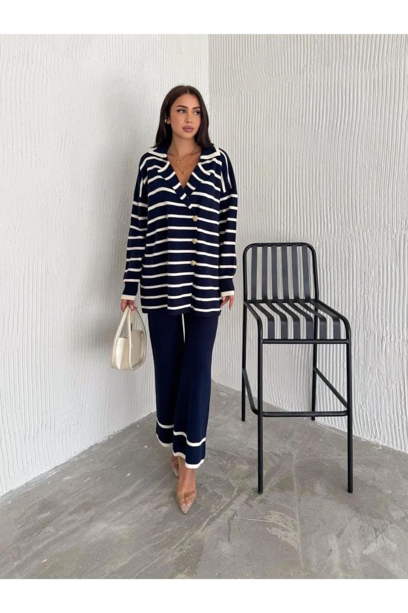 Compleu Tricot Femei Engross, Doua Piese, Over Size, Nasturi, Bleumarin, MN-5555