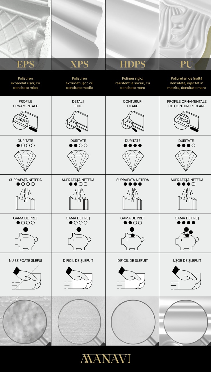 Cornisa decorativa din poliuretan P876 este un element elegant si practic pentru decorarea interioarelor. Avand dimensiunile de 8x8.5x200 cm, aceasta este proiectata pentru a adauga un aspect rafinat si sofisticat la orice camera. Este fabricata din poliuretan de inalta calitate, ceea ce o face rezistenta la deteriorare si uzura, asigurand astfel o durata lunga de viata. Are un design clasic si detaliat, ceea ce o face potrivita pentru a completa o gama larga de stiluri de interior. Materialul din poliuretan face ca aceasta cornisa sa fie usoara, ceea ce faciliteaza instalarea sa pe perete sau tavan. De asemenea, poate fi taiata si ajustata la dimensiuni pentru a se potrivi spatiului dorit. Aceasta cornisa poate fi utilizata in diferite incaperi, precum livinguri, dormitoare, holuri sau sali de mese, adaugand un aspect sofisticat si infrumusetand orice spatiu. Suprafata neteda a cornisei permite aplicarea cu usurinta a vopselei pentru a se potrivi cu paleta de culori a incaperii.