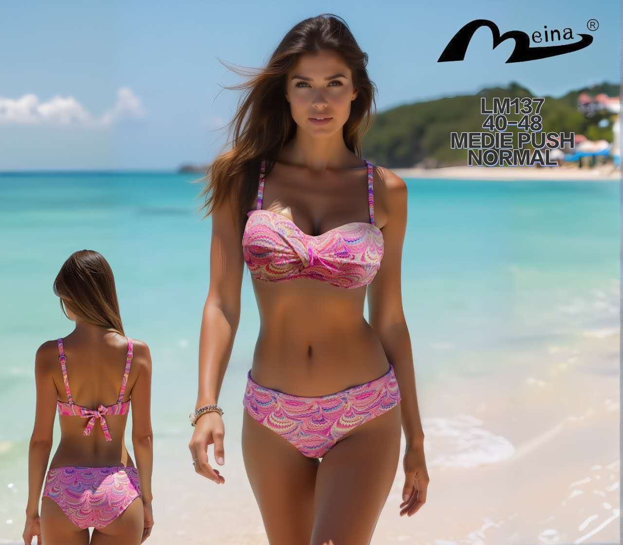 Costum de baie dintr o piesa Adauga culoare și stil verii tale cu acest costum de baie modern și elegant! Realizat din materiale de calitate superioară, acest model în două piese combină un imprimeu cu accente clasice negre – perfect pentru un look fresh și atrăgător pe plajă sau la piscină.Sutienul are cupe moi, bretele care se leagă după gât și un nod decorativ în față, pentru un plus de stil și susținere. Slipul cu talie medie este prevăzut cu o bandă lată imprimată, care accentuează talia și oferă un plus de confort. Detalii produs: • Două piese: sutien și slip • Imprimeu american • Sutien cu prindere după gât și nod decorativ frontal • Slip cu talie medie și bandă lată • Material elastic, confortabil și rezistent la apă sărată sau clor.Compoziție: 82% poliamidă, 18% elastan.Îngrijire: Spălare manuală recomandată pentru a păstra intensitatea culorilor