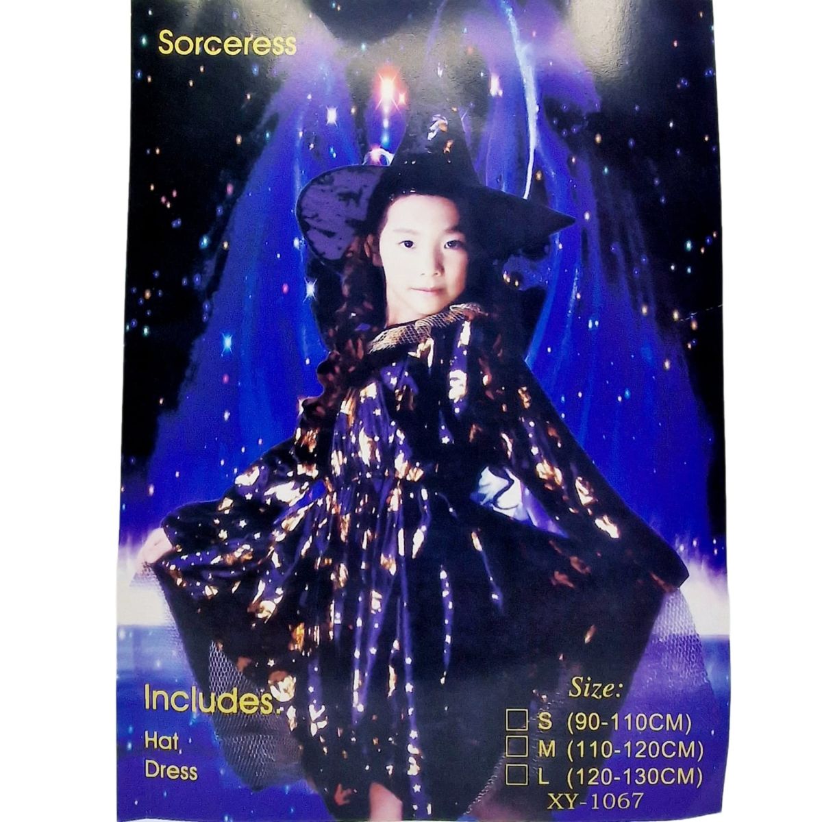 Costumul de vrăjitoare pentru copii cu coif și rochiță este o alegere adorabilă și amuzantă pentru petrecerile de Halloween sau serbările tematice. Setul include o rochiță elegantă, confecționată din materiale ușoare și confortabile, cu detalii colorate și imprimeuri inspirate din universul magic al vrăjitoarelor. Croiala este lejeră, oferind libertate de mișcare și un plus de confort pe durata purtării. Rochița este completată de un coif conic clasic, accesoriul nelipsit al oricărei vrăjitoare, care adaugă un strop de mister și autenticitate costumului. Designul vesel, îmbină elementele „înfricoșătoare” cu cele jucăușe, astfel încât cei mici să se simtă atât înspăimântători, cât și fermecători. Ușor de îmbrăcat și de accesorizat, acest costum este perfect pentru copii care vor să intre în rolul unei vrăjitoare prietenoase și pline de imaginație. Dimensiuni : 60cm
