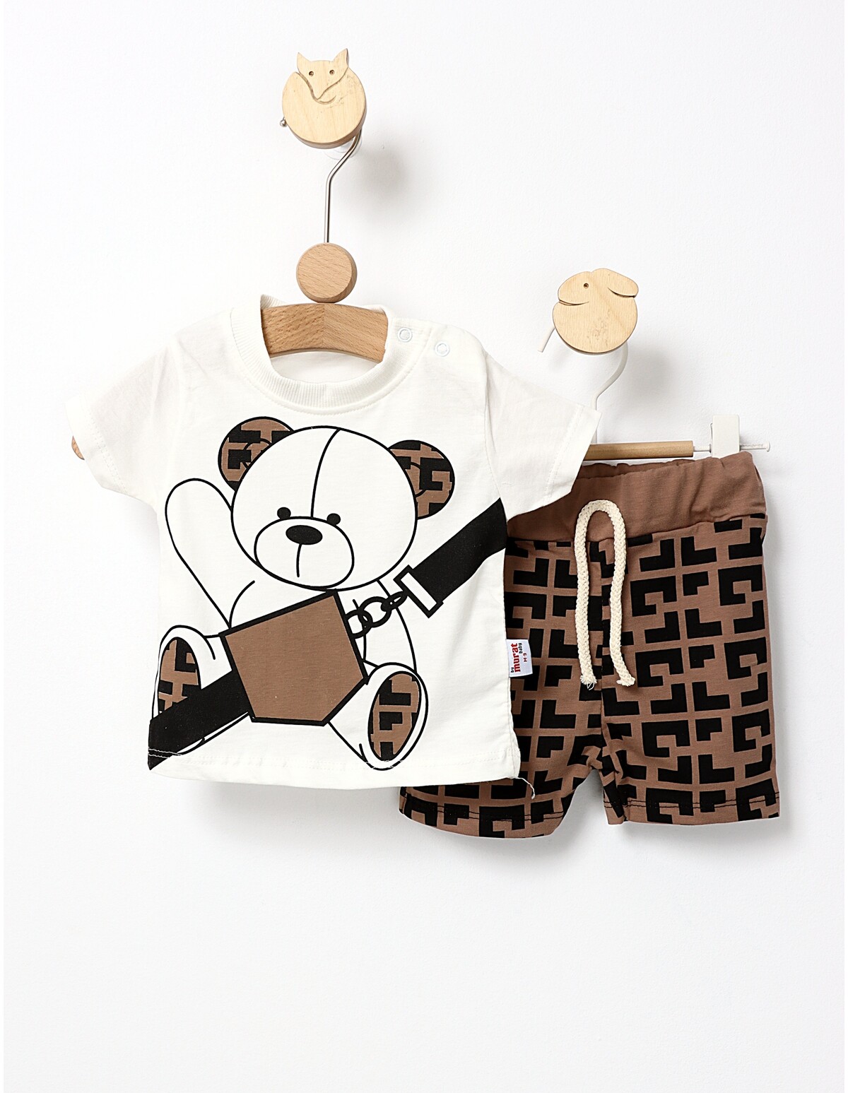 Setul de vară pentru băieței, format dintr-un tricou cu imprimeu ursuleț și pantalonași scurți cu elastic în talie, este alegerea ideală pentru a combina confortul și stilul în zilele călduroase. Realizat din material 100% bumbac de înaltă calitate, acest set oferă o senzație moale și plăcută pe pielea sensibilă a copilului, asigurând o ventilare optimă și un confort maxim pe durata întregii zile. Tricoul cu imprimeu adorabil de ursuleț adaugă un element jucăuș și vesel garderobei de vară a micuțului tău, fiind perfect pentru activitățile zilnice, de la joacă în parc până la plimbări sau întâlniri cu familia și prietenii. Pantalonașii scurți sunt proiectați pentru a oferi libertate de mișcare și confort pe tot parcursul zilei. Talie elastică asigură o potrivire perfectă și facilitează îmbrăcarea și dezbrăcarea rapidă, oferind un plus de comoditate pentru părinți și confort pentru micuț. Designul modern și practic al pantalonilor îi face ideali pentru toate activitățile de vară, asigurând confortul necesar în fiecare moment. Disponibil într-o gamă variată de mărimi, acest set de vară pentru băieței combină perfect funcționalitatea și stilul, fiind potrivit pentru orice ocazie. Alege acest set pentru a-i oferi băiețelului tău o ținută modernă și confortabilă, ideală pentru zilele însorite și momentele speciale petrecute în familie.