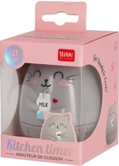 Adu dragalasenie si bucurie in gatitul si coptul cu cronometrul de bucatarie Legami Kitty . Acest cronometru reglabil manual poate numara pana la 60 de minute, fara a necesita baterii, ceea ce face ca asteptarea acelor fursecuri de casa sa fie putin mai distractiva.Reglabil manual. Pentru a seta cronometrul, rotiti butonul in sensul acelor de ceasornic pana la 60 de minute, apoi rotiti in sens invers acelor de ceasornic pana la durata dorita. Nu sunt necesare baterii.Avertismente!Acest produs nu este o jucarie.