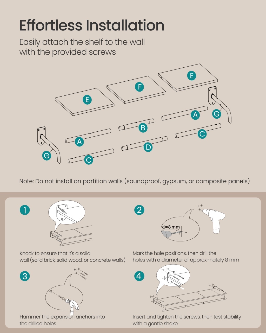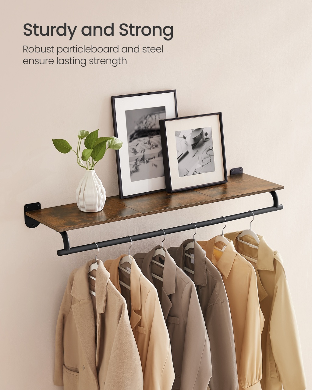 Cuier Songmics 109 x 28 x 13.2 cm — Organizare verticală și rafinament pentru hol și dressing Design modern și materiale de calitate Construit cu o estetică simplă și contemporană, acest cuier îmbină finisajul cald de maro rustic cu accente în negru , astfel conferind oricărui hol sau dressing o notă de rafinament discret. Combinația de oțel robust și PAL premium asigură atât o senzație tactilă plăcută, cât și o durabilitate pe termen lung, iar suprafața superioară devine un suport elegant pentru rame foto sau decorațiuni, sporind estetica întregului decor. Funcționalitate și organizare Acest model 2-în-1 integrează o poliță practică și o bară pentru umerașe, astfel organizarea hainelor și a accesoriilor devine rapidă și eficientă, economisind spațiu util pe podea și optimizând circulația în locuință. Datorită capacității totale de 60 kg (polița: 40 kg; bara: 20 kg), cuierul suportă obiecte grele și rânduri de haine fără a compromite stabilitatea, ceea ce îl face ideal pentru hol , dressing , dormitor sau spălătorie . Prin proiectare inteligentă, acest corp de mobilier organizează, protejează și pune la dispoziție accesul rapid la esențialele zilnice, aducând versatilitate și spațiu în plus locuinței tale. Montaj și întreținere Montajul pe perete este simplu și sigur atunci când urmezi instrucțiunile, iar recomandarea producătorului este montarea pe un perete solid (cărămidă, lemn masiv sau beton), ceea ce asigură o fixare stabilă și o durată lungă de utilizare. Pentru întreținere, este suficient să ștergi suprafețele din PAL cu o lavetă moale și să cureți cadrul metalic cu o cârpă uscată sau ușor umedă, evitând solvenții agresivi pentru a păstra finisajul și durabilitatea în condiții optime. Verifică periodic elementele de prindere pentru a menține siguranța și stabilitatea montajului. Comandă acum Adaugă un cuier practic și elegant în casa ta acum pentru a transforma haosul în ordine și stil. Detalii tehnice complete Dimensiuni și greutate Dimensiuni produs: 109 x 28 x 13.2 cm Greutate produs: 4 kg Capacitate maximă: 60 kg (polița: 40 kg; bară: 20 kg) Materiale și caracteristici Material corp: Oțel și PAL melaminat Culoare: Maro rustic și Negru Montaj și pachet Stare asamblare: Neasamblat Conținut pachet: 1 x Cuier, Accesorii de montaj, Instrucțiuni Stil și origine Stil: Modern Destinație recomandată: Hol, Dormitor, Dressing (walk-in closet), Spălătorie Informații importante Montează întotdeauna cuierul pe un perete solid (cărămidă, lemn masiv sau beton) și nu depăși capacitatea maximă indicată; distribuie uniform greutatea între poliță și bară pentru a evita solicitările punctuale. Verifică periodic sistemele de prindere și nu permite copiilor să se agațe de mobilier pentru a preveni accidentele. Respectând aceste recomandări, te bucuri de siguranță, performanță și durabilitate pe termen lung.