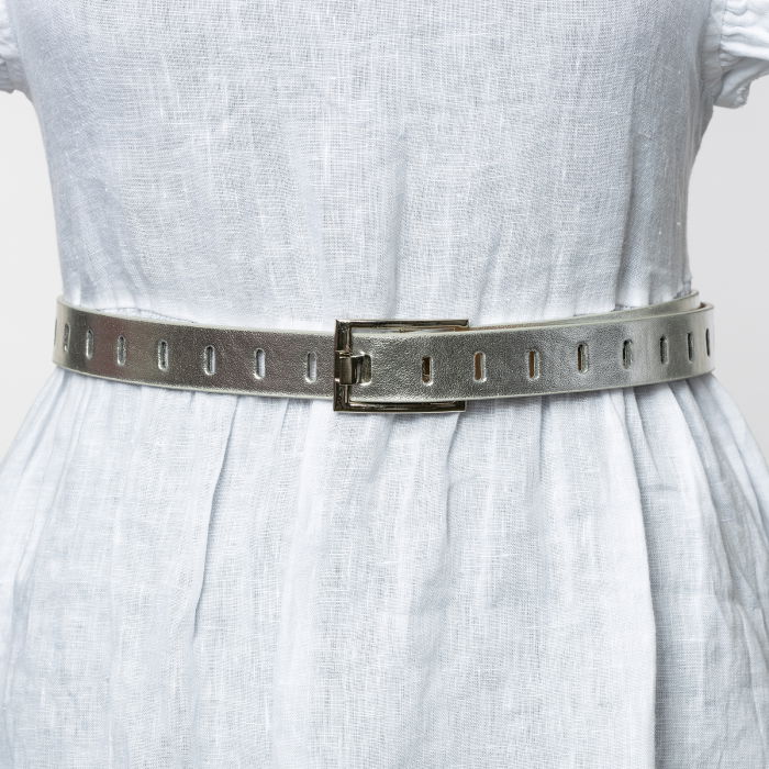 Curea argintie de 2.5 cm, din piele ecologica cu catarama metalica argintie dreptunghiulara