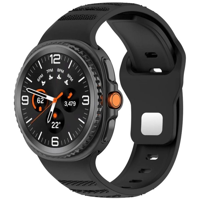 Cureaua pentru ceas inteligent fabricata din silicon este confortabila si ofera un aspect atractiv smartwatch-ului tau. Produsul nu include si ceasul, doar cureaua. Silicon flexibil și plăcut la atingere Prindere ajustabilă cu buton Design sport Usor de instalat Curea compatibila cu generatiile de Galaxy Watch 8 si Galaxy Watch 8 Classic, cu marimile 40mm, 44mm, 46mm.
