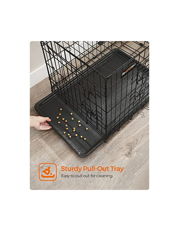 •Specificatii: •Material: Metal •Culoare: Negru (PPD48H) •Dimensiunea totala: 122 x 76 x 81 cm (W x D x H) •Greutatea net: 14 kg •Pachetul contine:1 x Cușcă pentru câini1 x Instrucțiuni (EN, DE, FR, ES, IT)