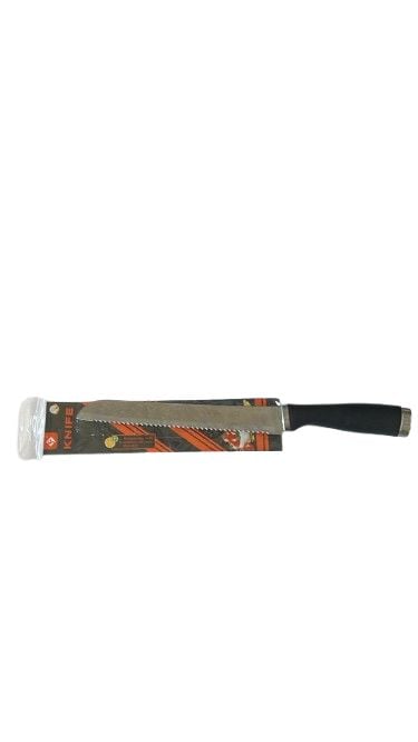 Cuțit bucătărie C-3 – lamă zimțată pentru pâine, inox, mâner ergonomic Cuțit de bucătărie cu lamă lungă zimțată, ideal pentru tăierea eficientă a pâinii, cozonacului, produselor de patiserie și altor alimente cu crustă. Lama din oțel inoxidabil permite o tăiere uniformă fără a zdrobi miezul, iar mânerul ergonomic oferă confort și siguranță în utilizare. Specificații: Model: C-3 Tip lamă: zimțată, din oțel inoxidabil Mâner: plastic rezistent, ergonomic, cu inel metalic Ușor de utilizat, curățat și întreținut Recomandat pentru: Utilizare casnică și profesională Distribuție en-gros pentru magazine, restaurante, brutării, HORECA