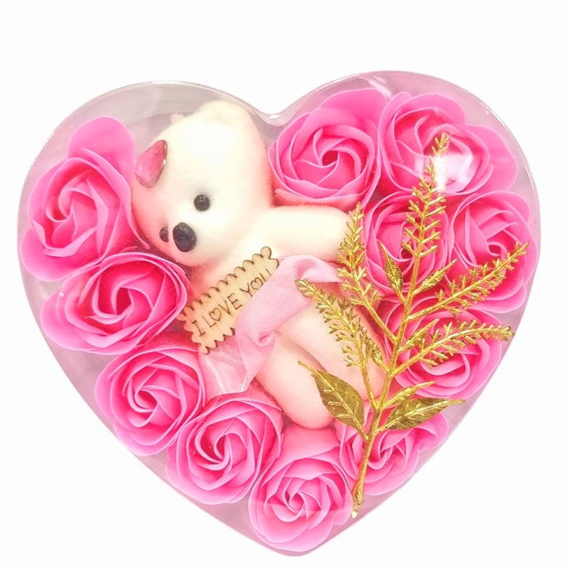 Decoratiune cu flori de sapun parfumati 11 trandafiri in cutie