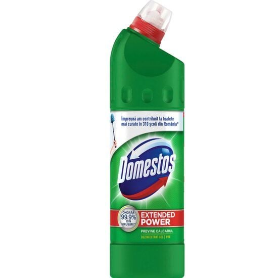 Noul Domestos Extended Power este un dezinfectant inalbitor cu molecule active ANTI-CALCAR care adera la peretii vasului de toaleta chiar si sub apa. Domestos Extended Power are o vascozitate ridicata si, dupa ce este trasa apa, continua sa adere la suprafata din toaleta si sa distruga microbii. Concentrat (pentru protectie indelungata impotriva microbilor din vasul de toaleta) sau diluat (pentru gresie, mozaic, faianta, obiecte sanitare si alte suprafete lavabile), este eficient in toata casa.- Dezinfectant inalbitor cu vascozitate ridicata- Omoara toti microbii cunoscuti- Protectie de 3x mai indelungata impotriva calcarului*- Improspateaza- Indeparteaza petele*fata de formula precedenta Domestos 24H PlusUtilizati in siguranta produsele biocide. Cititi intotdeauna eticheta si informatiile despre produs inainte de utilizare.Mod ambalare 20/Bax