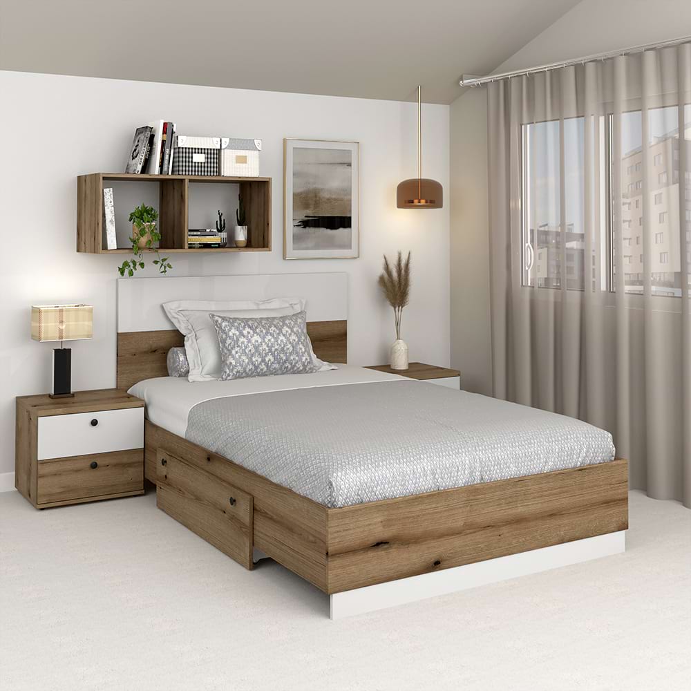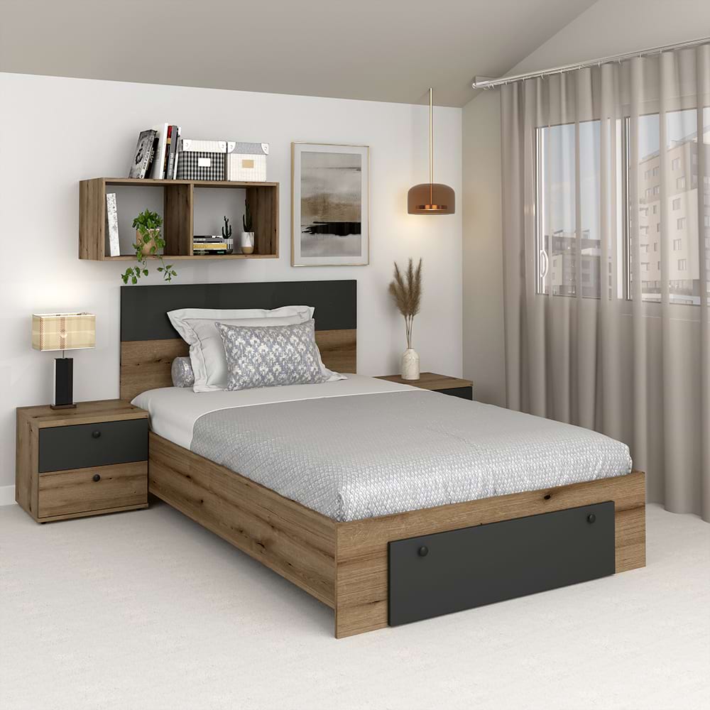 Ansamblul Dormitor Ambro in configuratia AMBRO7 reprezinta o sinteza perfecta intre design-ul modern si maximizarea spatiului. Cu un finisaj echilibrat de stejar (oak) si alb, acest set adauga o nota de caldura si rafinament oricarei camere. Dormitorul se poate monta pe ambele colturi ale camerei.Deasupra capului, dulapurile suspendate cu usi albe creeaza un contrast placut si ofera spatiu suplimentar pentru a va organiza cartile si decoratiunile. Rafturile deschise sunt ideale pentru a expune articolele preferate sau pentru a pastra la indemana obiectele esentiale.Designul inteligent include un pat confortabil cu lada depozitare in tablia de la cap, la care se poate adauga optional un sertar ce ofera spațiu de depozitare generos pentru pilote, paturi sau perne voluminoase. Patul beneficiaza de 2 dimensiuni: 120x200cm si 140x200cm, facandu-l util atat pentru camere de copii si adolescenti ce dorm singuri in camera, dar si pentru un cuplu de adulti. Suportul de saltea permite utilizarea pe termen lung a patului, fara deterioararea saltelei in timp datorita spatiilor de ventilare intre traverse si a suportilor de sustinere.Elimina problema pardoselilor strambe - ponturile (dulapurile suspendate) au picioare metalice de reglare, o solutie excelenta atunci cand pardoseala nu este perfect plana. Elimina prinderea dulapurilor suspendate pe perete - dulapurile suspendare necesita doar ancorarea (prinderea de siguranta), nu necesita prinderea de sustinere pe perete.Interschimbabil - ansamblul se poate pozitiona pe orice colt al camerei.TAMOS ofera avantajul unui pret de fabrica, cu livrare rapida si gratuita pe tot teritoriul tarii, garantie de producator! Dormitor configurabilconfigurezi materialele, decor, PALconfigurezi dimensiune patconfigurezi sertar patconfigurezi dimensiuni dulapconfigurezi complemente Mobilier kitmobilier kit, se livreaza demontat, ambalat in cutii de cartonKitul contine schita montaj, feronerie, certificat garantie si conformitate Configuratia AMBRO 7Pat de colt AMBRO cu suport saltea inclus Dulap suspendat biblioteca AMBRO 207x35x200cmDulap suspendat biblioteca AMBRO 90x35x200cm sau 110x35x200cmLada depozitare tablie pat AMBRO 90x35x90cm sau 110x35x90cmOptiuniSertar pat (optiune)Oglinda set 3 sau 4 (optiune) Pat matrimonial Dimensiuni interioare pat/dim saltea: 120x200cm sau 140x200cmDimensiuni exterioare pat 127x204cm sau 147x204cm Dulapuri (Lungime x Adancime x Inaltime)Dulap suspendat biblioteca AMBRO 207cm Dulap suspendat biblioteca AMBRO 90cm sau 110cm Complementele - din aceeasi colectie PRIMAVERAComode - optionalDulapuri - optionalToalete - optionalTaburete - optionalLazi depozitare - optional MaterialePAL dublu melaminat 16mm, 25mm Oak, AlbCant ABS 0,4mmCant ABS 1mm (fronturi si rama patului) Garantie producator 24 luni Transport GRATUIT in toata tara*Salteaua de pat si accesoriile din imagine nu sunt incluse in pret( Lenjerie , perne , lampi , veioze...)...