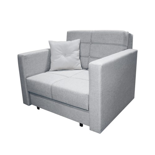 Firin este un fotoliu extensibil modern potrivit pentru spatii inguste datorita latimii de 100 cm. Fotoliul Firin este extensibil putand fi utilizat zilnic atat ca si fotoliu pentru petrecerea timpului liber cat si ca un pat confortabil de o persoana pe timpul noptii. Suprafata de dormit este 80 * 195 cm. Fotoliul Firin are saltele din burete de densitate mare pentru o rezistenta sporita in timp, iar datorita suprafetei plane care se formeaza atunci cand se extinde asigura un somn odihnitor pe timpul noptii. Atat fotoliu cat si pernele sunt tapitate cu stofa. Fotoliul Firin are o lada de depozitare foarte practica atat pentru lenjeria de pat, cat si pentru diverse obiecte pe care le folositi rar. Fotoliul Firin are 1 perna decorativa pentru aspect mai placut. Fotoliul Firin este foarte usor de montat avand elemente de cuplare rapide. Cusaturile de pe sezut dau o eleganta aparte fotoliului Firin. Fotoliul are 2 brate cu aspect modern. Dimensiuni fotoliu Firin strans: Latime: 1000 mm Adancime: 1040 mm Inaltime: 820 mm Suprafata de dormitor fotoliu Firin: 800 x 1950 mm