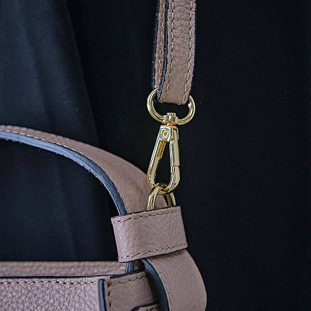 Geanta eleganta, ChicCarry, din piele naturala, cu inchidere superioara si curea detasabila Caracteristici poseta/geanta: - cu inchidere superioara de tip fermoar - interior cu un compartiment principal si un buzunar lateral - model ce se preteaza in doua variante de purtare: pentru umar si curea detasabila pentru a fi tinuta in mana - exterior realizat din piele naturala - curea detasabila cu prindere metalica aurie - interior cu captuseala din poliester - suporti (picioruse) de protectie, metalici, aurii Fabricat in Italia Dimensiuni: - lungime: 21 cm - inaltime: 16 cm - grosime: 10 cm Sfaturi de intretinere : - Curatati in mod regulat geanta cu o laveta umeda si uscata - Pastrati geanta departe de lumina directa a soarelui si de surse de caldura excesiva, deoarece acest lucru poate decolora si deteriora materialul - Pentru a preveni deformarea si deteriorarea detaliilor metalice, umpleti geanta cu hartie sau alte materiale de umplere, astfel incat sa pastreze forma originala. In general, intretinerea unei genti cu detalii metalice si material sustenabil implica evitarea expunerii la factorii de mediu duri si folosirea produselor de curatare si protectie potrivite pentru a mentine aspectul si functionalitatea gentii pe termen lung. Imaginile Fashionforyou au caracter informativ, iar nuanta, tonul si intensitatea culorii pot varia in functie de monitor/ecran telefon.