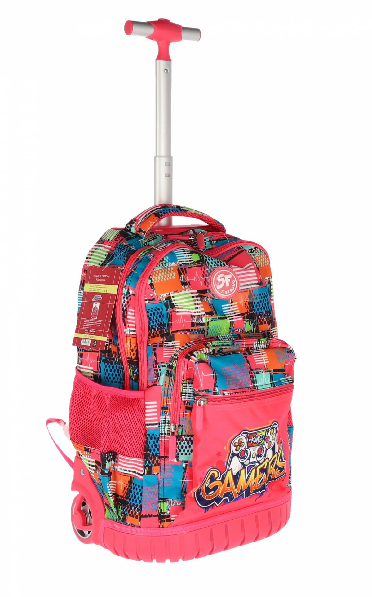 Ghiozdan troller Strong pentru fete, compartimente multiple, maner ajustabil, multicolor Ghiozdanul troller Strong by Pigna este alegerea perfecta pentru elevele care isi doresc un accesoriu de scoala practic, rezistent si cu un design modern. Cu un imprimeu multicolor atractiv, acest ghiozdan aduce un plus de stil si functionalitate in fiecare zi de scoala. Fabricat din materiale de inalta calitate, rezistente la uzura si conditii meteo variate, trollerul garanteaza o utilizare indelungata. Compartimentele multiple si buzunarele suplimentare ofera suficient spatiu pentru organizarea cartilor, caietelor, instrumentelor de scris si altor accesorii scolare. Transportul devine mult mai usor datorita rotilor robuste, care asigura o miscare lina pe orice tip de suprafata, si a manerului telescopic ajustabil, care se adapteaza la inaltimea fiecarui utilizator. Cu o greutate echilibrata si un design ergonomic, ghiozdanul reduce presiunea asupra spatelui si umerilor, fiind ideal pentru utilizarea zilnica. Specificatii: - ghiozdan troller fete; - material: textil rezistent, de calitate superioara; - design modern, multicolor, special pentru fete; - compartimente multiple si buzunare suplimentare; - roti robuste pentru transport usor si stabil; - maner telescopic ajustabil la diferite inaltimi; - rezistenta la uzura si conditii meteo variate; - confortabil, reduce presiunea asupra spatelui si umerilor; - dimensiuni: 48 x 32 x 21 cm (i x l x a); - greutate: 2,18 kg; - culoare multicolor.