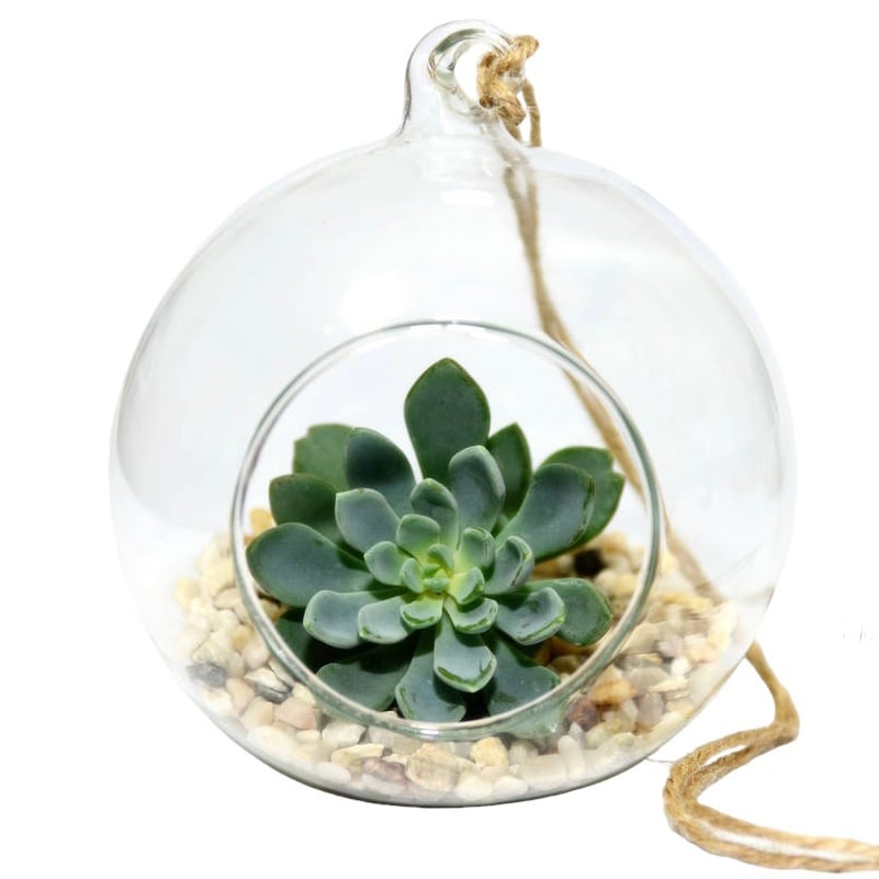 Cu design deosebit , globul reprezintă o alternativă la clasicele ghivece cu flori. Acest recipient deschis are o agățătoare pe partea superioară și se poate agăța oriunde sau se poate așeza pe o suprafață plană. Este un decor ideal pentru orice loc din casă și cu siguranță va aduce natura mai aproape de dumneavoastră , indiferent de stilul încăperii, completând atât decoruri moderne, cât și clasice. Având un orificiu lateral, se poate introduce în el o lumânare sau se poate decora cu plante uscate, suculente artificiale, nisip decorativ colorat . Potrivit pentru aranjamente florale naturale sau artificiale ,sau ca Terariu ,folosind pământ și plante cu rădăcini dar poate fi și un cadou deosebit pentru persoane dragi. Fiind fabricat din sticlă poate prezenta mici imperfecțiuni de turnare. Plantele și decorul au rol de prezentare și nu sunt incluse în preț. Dimensiuni: înălțime 12cm