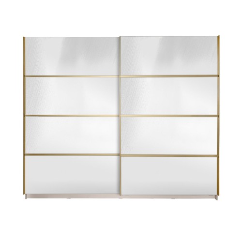 Dulapurile cu usi culisante Gold sunt o alegere moderna pentru orice dormitor sau dressing. SPECIFICATII Sisteme de culisare cu amortizare la inchidere (soft close). 3 Benzi LED incastrate (stanga, dreapta si sus) care se aprind in momentul deschiderii usilor cu temporizator pentru uitarea usilor deschise. Profile de manere si profile tip H intre panourile usilor de culoare aurie. Politele mobile din stanga si din dreapta pot fi puse in mai multe pozitii pentru a crea spatii mai inguste sau mai inalte pentru ca sunt date gauri pentru suportii de polite din 50 in 50 mm. Dulapurile sunt disponibile in 4 latimi diferite: 1800 mm, 2000 mm, 2500 mm, 2800 mm. Vezi toate variantele disponibile aici: https://www.spectral.ro/index.php?route=product/search&search=gold Usile contin 8 panouri (4 pe fiecare usa) din MDF Lucios crem sau cu oglinda. Acestea se pot comanda si combina la montaj in orice varianta. Vezi aici mai multe variante propuse de noi: https://www.spectral.ro/index.php?route=product/search&search=gold Optional in interiorul dulapului se pot adauga comode cu 4 sertare cu amortizare la inchidere astfel: 1 comoda care poate fi pusa in stanga sau in dreapta sau 2 comode care se pun si in stanga si in dreapta. In dulapurile Gold 1800 si Gold 2000 se pot pune comode cu latimea de 450 mm, iar in dulapurile Gold 2500 si Gold 2800 se pot pune comode cu latimea de 600 mm. Se scot sau se muta mai sus politele mobile acolo unde se doreste punerea unei comode sau a ambelor comode. Vezi aici mai multe variante propuse de noi: https://www.spectral.ro/index.php?route=product/search&search=gold MATERIALE Carcasa: PAL Melaminat crem 18 mm Usi: PAL Melaminat cu Oglinda Accesorii: Profile manere aurii si profile H aurii intre panourile usilor metalice, diverse accesorii pentru montaj din metal si plastic DIMENSIUNI Latime: 2490 mm Adancime: 642 mm Inaltime: 2109 Produsul din acest link care se poate comanda la pretul afisat este Dulapul Gold 2500 cu usi integral cu oglinda si doua comode cu latimea de 600 mm in interior. Vezi mai multe variante configurate de noi aici: https://www.spectral.ro/index.php?route=product/search&search=gold Daca doriti configurari diferite ale dulapurilor Gold sau sa beneficiati de servicii de montaj la domiciliu puteti sa comandati produsul in orice magazin Spectral Mobila. Vezi aici toate adresele magazinelor noastre: https://www.spectral.ro/magazine