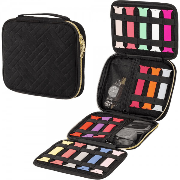 Te-ai saturat sa te chinui sa îti organizezi curelele smartwatch-ului? Te trezesti scotocind prin sertare, în cautarea curelei perfecte care sa se potriveasca cu tinuta ta? Noi avem solutia pe care o cauti! Îti prezentam husa din material textil care ajuta la depozitarea a 35 curele de ceasuri, compatibila cu Apple Watch, Huawei Watch, Galaxy Watch sau orice fel de curea, într-o culoare neagra atemporala. Imagineaza-ti ca ai toate curelele smartwatch-ului tau organizate frumos într-un singur loc, usor de accesat oricând ai nevoie de ele. Husa nu numai ca ofera o solutie de depozitare eleganta, dar raspunde si unei nevoi comune împartasite de pasionatii de smartwatch-uri ca tine. Gata cu curelele încurcate sau ratacite - aceasta husa le va pastra în siguranta si mereu gata sa îti completeze stilul. Confectionata cu grija si precizie, husa este proiectata pentru a îndeplini cele mai înalte standarde de calitate si durabilitate. Materialul din nylon ofera o senzatie placuta la atingere, asigurându-se ca pretioasele tale curele sunt protejate de praf, zgârieturi si uzura zilnica. Va recomandam sa luati în considerare ca produsul poate avea o culoare usor diferita decât cea afisata din cauza diferentelor de calibrare ale ecranelor. Specificatii tehnice: Tip produs: Husa organizatoare pentru curele Material: Nylon Culoare: Negru Locuri disponibile: 26 Dimensiune: 195 x 235 mm Continut pachet: 1 x Husa organizatoare (Curelele nu sunt incluse)