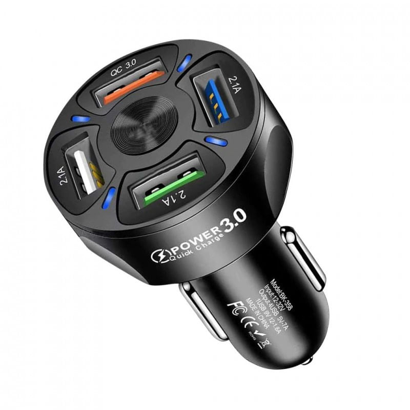 Incarcatorul este prevazut cu 4 porturi USB, puteti incarca mai multe dispozitive simultan si rapid. Invelisul adaptorului de incarcare este fabricat din material plastic, il puteti folosi fara sa va faceti griji ca il zgariati. Acest incarcator auto este proiectat cu protectie la supraincarcare, se va opri automat atunci cand dispozitivul este incarcat complet, asigurandu-va securitatea. Acest adaptor de incarcare adopta tehnologia de incarcare rapida 3.0, care este, de asemenea, potrivita pentru QC2.0, care poate distribui usor curentul pentru a se incarca rapid dispozitivul dumneavoastra. Acest incarcator este potrivit pentru aproape toate dispozitivele de incarcare, cum ar fi telefonul, laptopul si altele Specificatii: Material: PC Dimensiune: 4 * 4 * 7CM. Intrare: 12-24V. Iesire: 5V/7A , 9V /1.8A, 12V/1.8A (curentul total este de 7A). Caracteristici: Cu un corp de dimensiuni minuscule, se imbina perfect cu orice bricheta auto si se aseaza confortabil cu marginea prizei. Portabil si pe care il puteti duce peste tot, potrivit pentru masina dvs. 12 - 24V Incarcati doua dispozitive simultan la viteza maxima cu 2.4A in fiecare port USB, viteza de incarcare este mai rapida decat incarcatoarele conventionale si functioneaza pentru toate dispozitivele cu alimentare USB, cum ar fi iPhone 8/8 Plus / X / 7 / 6S, Samsung Galaxy S9 / S9 + / S8 / S8 + / S7, iPad, tablete Android, baterii portabile, controlere de jocuri video, smartwatch, aparat foto etc. Protectia multipla impotriva supraincarcarii, supraincarcarii, supraincalzirii si temperaturii ridicate va proteja dispozitivele dumneavoastra. Incarcatorul cu functie rapinda de incarcare rapida QC, va permite sa incarcati telefonul de doua ori mai rapid decat cu un incarcator simplu.