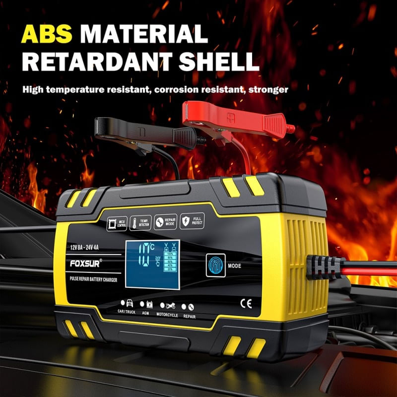 Incarcatorul pentru Baterie Auto Cu Microprocesor Foxsur B0228-Y este echipat cu un afisaj LCD inteligent care ofera o serie de functii si protectii avansate pentru bateriile cu plumb-acid. Caracteristici principale:Afisaj digital inteligent:Detecteaza automat temperatura exterioara.Afiseaza curent, tensiune si putere pentru o operare usoara.Încarcare inteligenta fara reglare manuala.Afisaj carusel automat de date care arata temperatura si tensiunea de încarcare.Potrivit pentru toate tipurile de vehicule:Interzis pentru bateriile cu Lithium.Compatibil cu baterii cu plumb-acid de 12V-24V si capacitati între 4AH-120AH (AGM, GEL, MF, SLA, VRLA).Functie de reparare cu puls pentru a ajuta la repararea pierderii bateriei si prelungirea duratei de viata a bateriei.Protectie multipla pentru baterie:Protectie împotriva polaritatii inverse, scântei, supraîncarcare, supracurent, circuite deschise, scurtcircuite si supraîncalzire.Usor de utilizat si simplu de conectat:Clar pozitiv si negativ, usor de conectat.Protectie împotriva polaritatii inverse.Afisaj digital pentru starea de încarcare si starea bateriei.Specificatii tehnice:Tipuri de baterii: Compatibil cu majoritatea bateriilor cu plumb-acid, inclusiv calciu, GEL, AGM, umede, EFB etc.Tehnologie Switchmode: Da.Protectii multiple:Protectie la polaritate.Protectie scurta la iesire.Protectie fara legatura a bateriei.Protectie la supratensiune.Protectie la supratemperatura.Ventilator de racire: Inclus.Tensiune de intrare: 100-240V AC, 50-60Hz.Iesire nominala: 12V 4A; 24V 8A.Tensiune minima de pornire: 2.0V.Gama bateriei: 6-150Ah.Protectie termica: 65°C +/- 5°C.Eficienta: Aproximativ 85%.Standarde conforme: CB, CE, IEC60335, EN61000, EN55014.Dimensiuni: 170×98×58mm.Avantaje:Încarcare automata si inteligenta.Functie de reparare cu puls.Protectie completa pentru siguranta bateriei si utilizatorului.Usor de utilizat cu afisaj digital intuitiv.Eficienta ridicata si conformitate cu multiple standarde internationale.Acest încarcator este ideal pentru întretinerea bateriilor pe termen lung, mentinerea bateriilor vehiculelor în stare optima si prelungirea duratei de viata a bateriilor prin functia de reparare.