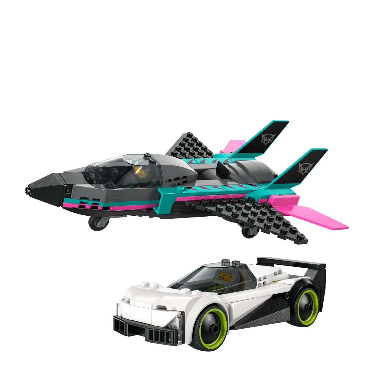 Setul LEGO City – Jet vs. Car (cod 60489) oferă o experiență plină de adrenalină, perfectă pentru fanii vitezei și ai competițiilor spectaculoase. Cu 259 de piese, acest set le permite copiilor să recreeze o cursă între un jet supersonic elegant și o mașină sport aerodinamică, într-o confruntare plină de energie și acțiune. Avionul cu reacție are un design modern, cu aripi reglabile, cockpit detașabil și accente coloristice îndrăznețe în turcoaz, roz și negru, în timp ce mașina sport se remarcă prin detalii realiste, roți late și un aspect futurist de supercar. Setul include două minifigurine LEGO – piloții de curse, fiecare pregătit să-și dovedească abilitățile la limită. Recomandat pentru copiii de peste 6 ani, acest set stimulează imaginația, dezvoltă coordonarea și încurajează joaca de rol, transformând fiecare cursă într-o aventură plină de viteză și creativitate.