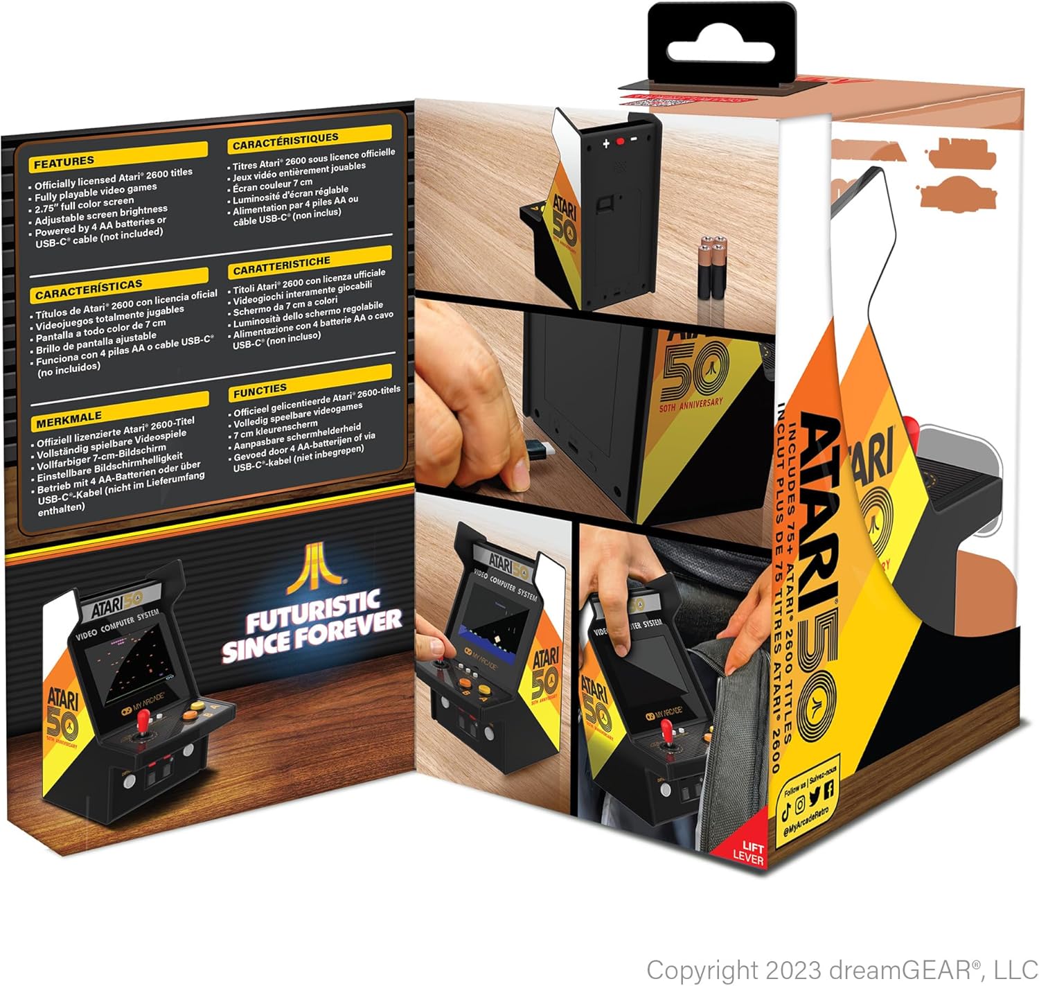 Atari® este un pionier al industriei jocurilor video, responsabil pentru unele dintre cele mai iconice jocuri din toate timpurile, inclusiv PONG®, Breakout® si Asteroids®. Atari a fost fondata in 1972 si, cu o istorie bogata ce se intinde pe peste 50 de ani, este una dintre cele mai vechi companii de jocuri video din lume. Prin accentul pus pe gameplay inovator si tehnologie de ultima generatie, Atari s-a aflat intotdeauna in avangarda industriei de gaming.100 de jocuri video.Titluri Atari® licentiate oficial, plus jocuri bonus.Ecran color de 2,75 inch.Interfata de utilizare intuitiva.Difuzor incorporat cu control al volumului.Port pentru casti de 3,5 mm pentru conectarea castilor.Luminozitatea ecranului reglabila.Functioneaza fie cu 4 baterii AA (neincluse), fie prin cablu USB-C® (neinclus).Printre titluri se numara Asteroids®, Centipede®, Millipede®, Breakout®, Missile Command®, Tempest® si multe altele.