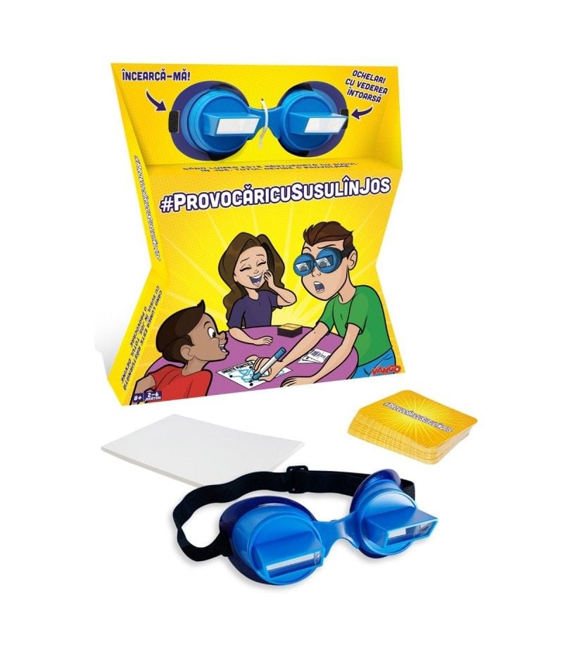 Joc de Petrecere Goliath/Jumbo: #PROVOCĂRICUSUSULÎNJOS (Upside Down Challenge) – Joc de Acțiune și Abilitate – Engros #PROVOCĂRICUSUSULÎNJOS este un joc de petrecere bazat pe provocări, conceput pentru a genera situații amuzante prin folosirea unor ochelari cu vedere întoarsă. Vârsta: Se adresează jucătorilor de la 8+ ani. Obiectivul Jocului: Jucătorii poartă ochelarii speciali care le inversează percepția vizuală (susul devine josul și invers). Apoi, trebuie să realizeze sarcini simple, cum ar fi scrisul, desenul sau diverse acțiuni, în timp ce viziunea lor este distorsionată. Conținut: Setul include ochelarii cu vedere întoarsă, o tablă albă de desen/scris și un set de cărți cu provocări. Mecanismul de Joc: Jocul provoacă jucătorii să își testeze abilitățile motorii și coordonarea în condiții neobișnuite. Acest produs este o achiziție excelentă pentru magazinele de jucării, distribuitorii de jocuri de petrecere și retaileri online. Elementul de challenge și umor asigură o cerere ridicată în rândul grupurilor de adolescenți și familiilor. Avantaje pentru achiziții Engros (B2B): Factor de Noutate/Umor: Ochelarii care distorsionează vederea reprezintă un punct de vânzare unic și un garant al distracției. Potrivit pentru Petreceri: Este un joc excelent pentru evenimente sociale și adunări de familie. Element Interactiv Fizic: Implică acțiune fizică (scris, desenat), fiind mai dinamic decât un simplu joc de cărți. Vârsta Target: 8+ ani acoperă un segment larg de public, de la copii mari la adulți.
