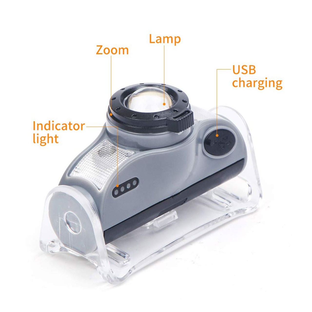 Lanterna pentru cap gri neagra cu bec LED XPG 5W 450 Im, 4 functii (zoom cu un click, lumina alba puternica-mica, lumina rosie intermitenta, buton pentru activare dezactivare senzor lumina. Cu baterie de 1200mAh Li-on 18650, putere lumina 25%,50%,75%,100 si lumina rosie de siguranta. Raza de acoperire 50-200m, durata de incarcare 3 ore si durata de functionare 2 ore. Cu baterie reincarcabile si cablu USB, cu magnet practic. Ideala pentru camping, ciclism, alpinism, pescuit, etc.