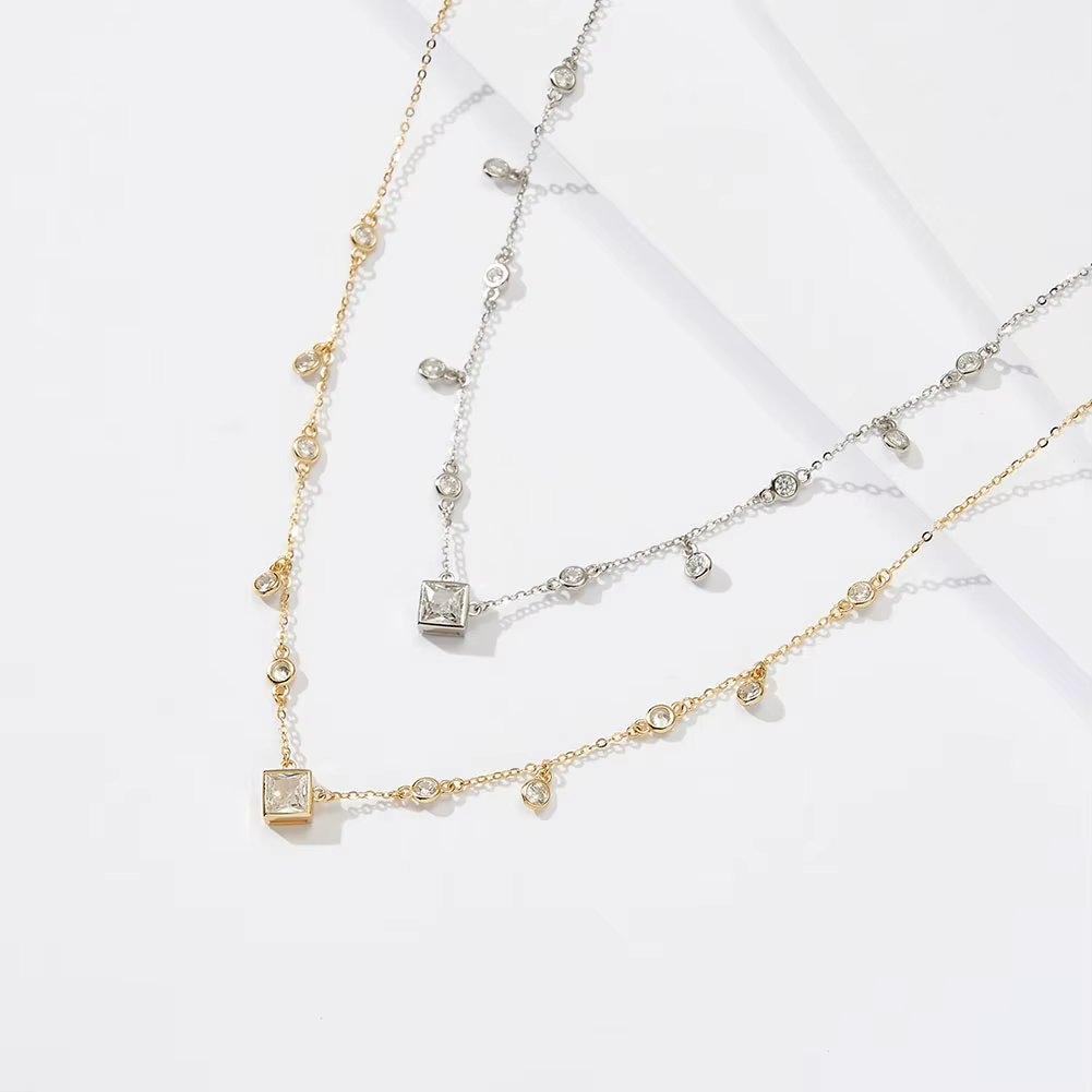 lantisor de argint 925, placat cu aur; lungime lantisor: 35.5 + 7.5 cm; greutate: 3.14 g; dimensiune element central: 0.8 cm; grosime lantisor: 0.15 cm; material piatra: zirconiu; finisaje premium de lux. Ingrijirea bijuteriilor : Dupa purtare va recomandam sa pastrati bijuteriile in ambalajul original sau intr-un saculet dintr-un material moale, pentru a evita zgarieturile. Pentru a le reda stralucirea este necesar sa le stergeti cu o carpa moale sau cu solutii speciale pentru curatarea argintului. Inainte de culcare, baie sau activitati similare in care bijuteriile ar intra in contact cu apa, produse cosmetice, detergenti, corozive sau chimice, scoateti bijuteriile deoarece aceste produse pot decolora sau modifica stralucirea. Evitati loviturile bruste deoarece ar putea cauza zgarieturi, ciobiri si alte daune si nu lipiti cristalele dezlipite cu adezivi tip super glue, picatura sau orice alt tip.