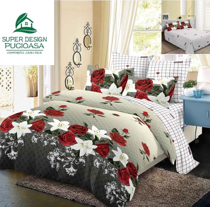 Lenjeriile din finet sunt de o calitate deosebită, țesătura fiind rezistenta la spalari repetate. Alege una din lenjeriile noastre pentru a oferi o nota de elegantă dormitorului tău , și pentru a avea un somn odihnitor. Finetul este un material tratat intr-un anumit mod, care are o rezistența la spălări repetate, fără a-și pierde din calitate pe o perioada îndelungată. MATERIAL: finet gros din Bumbac(80%) ranforsat cu microfibra PES (20%) ✅Material gros şi plăcut la atingere ✅Nu aluneca de pe pat ✅Nu se sifoneaza ✅Nu intră la apă şi nu se decolorează. ✅ Densitatea materialului: 120 gr/mp. Greutate neta a produsului: 3000 grame ✅ Imprimeul produsului poate prezenta diferente de incadrare la fetele de perna. INFO: Imprimeurile de pe fețele de pernă pot fi orice parte din imprimeul cearceafului, in sensul ca nu sunt incadrate identic ca-n fotografie datorită procesului de croiala. ✅ Cearceaf de pat : 1 pcs - 230x250 cm ✅ Cearceaf pilotă: 1 pcs - 200x230 cm ✅ Fețe de pernă:2 pcs- 55x80 cm ✅ Fețe de pernă:2 pcs - 70x70 cm