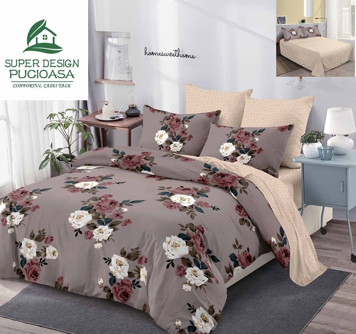 Lenjeriile din finet sunt de o calitate deosebită, țesătura fiind rezistenta la spalari repetate. Alege una din lenjeriile noastre pentru a oferi o nota de elegantă dormitorului tău , și pentru a avea un somn odihnitor. Finetul este un material tratat intr-un anumit mod, care are o rezistența la spălări repetate, fără a-și pierde din calitate pe o perioada îndelungată. MATERIAL: finet gros din Bumbac(80%) ranforsat cu microfibra PES (20%) ✅Material gros şi plăcut la atingere ✅Nu aluneca de pe pat ✅Nu se sifoneaza ✅Nu intră la apă şi nu se decolorează. ✅ Densitatea materialului: 120 gr/mp. Greutate neta a produsului: 3000 grame ✅ Imprimeul produsului poate prezenta diferente de incadrare la fetele de perna. INFO: Imprimeurile de pe fețele de pernă pot fi orice parte din imprimeul cearceafului, in sensul ca nu sunt incadrate identic ca-n fotografie datorită procesului de croiala. ✅ Cearceaf de pat : 1 pcs - 230x250 cm ✅ Cearceaf pilotă: 1 pcs - 200x230 cm ✅ Fețe de pernă:2 pcs- 55x80 cm ✅ Fețe de pernă:2 pcs - 70x70 cm
