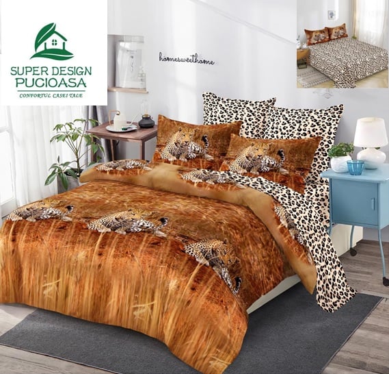 Lenjeriile din finet sunt de o calitate deosebită, țesătura fiind rezistenta la spalari repetate. Alege una din lenjeriile noastre pentru a oferi o nota de elegantă dormitorului tău , și pentru a avea un somn odihnitor. Finetul este un material tratat intr-un anumit mod, care are o rezistența la spălări repetate, fără a-și pierde din calitate pe o perioada îndelungată. MATERIAL: finet gros din Bumbac(80%) ranforsat cu microfibra PES (20%) ✅Material gros şi plăcut la atingere ✅Nu aluneca de pe pat ✅Nu se sifoneaza ✅Nu intră la apă şi nu se decolorează. ✅ Densitatea materialului: 120 gr/mp. Greutate neta a produsului: 3000 grame ✅ Imprimeul produsului poate prezenta diferente de incadrare la fetele de perna. INFO: Imprimeurile de pe fețele de pernă pot fi orice parte din imprimeul cearceafului, in sensul ca nu sunt incadrate identic ca-n fotografie datorită procesului de croiala. ✅ Cearceaf de pat : 1 pcs - 230x250 cm ✅ Cearceaf pilotă: 1 pcs - 200x230 cm ✅ Fețe de pernă:2 pcs- 55x80 cm ✅ Fețe de pernă:2 pcs - 70x70 cm