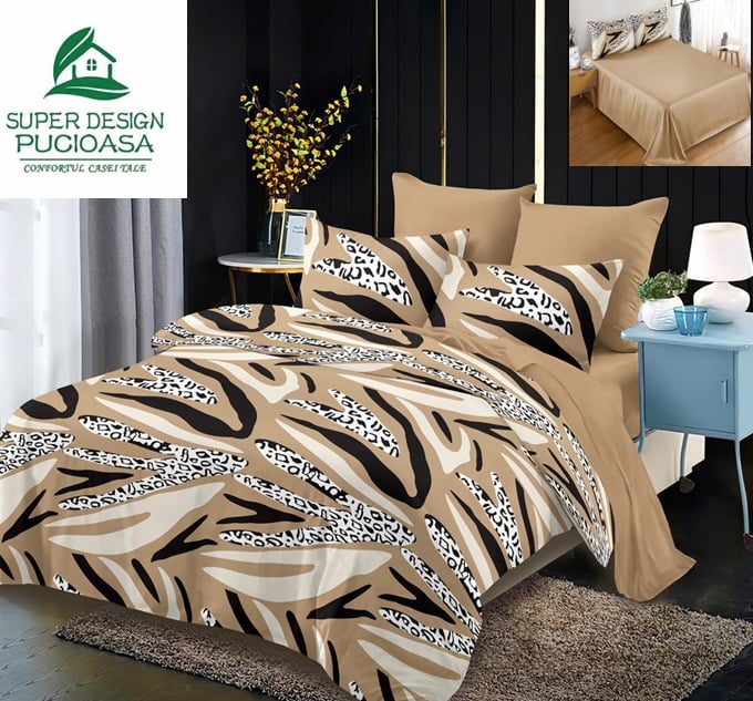 Lenjeriile din finet sunt de o calitate deosebită, țesătura fiind rezistenta la spalari repetate. Alege una din lenjeriile noastre pentru a oferi o nota de elegantă dormitorului tău , și pentru a avea un somn odihnitor. Finetul este un material tratat intr-un anumit mod, care are o rezistența la spălări repetate, fără a-și pierde din calitate pe o perioada îndelungată. MATERIAL: finet gros din Bumbac(80%) ranforsat cu microfibra PES (20%) ✅Material gros şi plăcut la atingere ✅Nu aluneca de pe pat ✅Nu se sifoneaza ✅Nu intră la apă şi nu se decolorează. ✅ Densitatea materialului: 120 gr/mp. Greutate neta a produsului: 3000 grame ✅ Imprimeul produsului poate prezenta diferente de incadrare la fetele de perna. INFO: Imprimeurile de pe fețele de pernă pot fi orice parte din imprimeul cearceafului, in sensul ca nu sunt incadrate identic ca-n fotografie datorită procesului de croiala. ✅ Cearceaf de pat : 1 pcs - 230x250 cm ✅ Cearceaf pilotă: 1 pcs - 200x230 cm ✅ Fețe de pernă:2 pcs- 55x80 cm ✅ Fețe de pernă:2 pcs - 70x70 cm