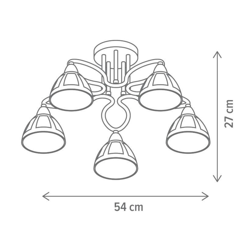 Lustra Klausen Echo aduce eleganța stilului clasic în centrul casei tale, combinând structura metalică albă cu elemente multicolore din sticlă. Este o soluție de iluminat impresionantă și rafinată pentru camerele mari sau centrale de socializare. ✨ Avantajul unic Cu 5 dulii E14 , această lustră oferă o iluminare plină și distribuită uniform, transformând încăperea într-un ambient primitor. Designul decorativ și detaliile elegante adaugă personalitate și stil, fără a fi excesiv de complicat. ? Cum îți îmbunătățește spațiul Ai un living sau o zonă de dining unde vrei lumina perfectă + impact vizual ? Lustra Echo oferă atât iluminare eficientă, cât și un punct focal estetic ce completează perfect decorul clasic sau clasic-modern. Exemple practice: Living: iluminare principală cu accent clasic Dining: lumină uniformă deasupra mesei Dormitor: atmosferă caldă și elegantă Vestibul / hol mare: accent vizual de impact ? Beneficii explicate pe înțelesul tuturor Stil clasic și elegant ? 5 surse E14 pentru iluminare eficientă ? Compatibilă cu becuri LED economice Structură solidă din metal și sticlă Potrivită pentru mai multe clase energetice ? Specificații tehnice Dulie: E14 Număr surse iluminare: 5 Putere maximă bec: 9 W / sursă Bec inclus: Nu Dimabilă: Nu Tensiune alimentare: 220-240 V Frecvență: 50 Hz Protecție: IP20 Împământare: Da Dimensiuni: Înălțime: 27 cm Diametru: 54 cm Greutate netă: 2.9 kg Greutate brută: 3.8 kg Garanție: 2 ani Lustra Klausen Echo 5xE14 combină iluminarea eficientă cu designul clasic și detalii atractive. O alegere excelentă pentru un ambient elegant și primitor în living, dining sau alte camere centrale din casă.