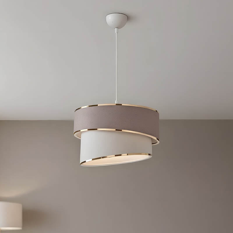 Lustră Loopy, bej/alb, 30x18 cm Adaugă o notă de eleganță și rafinament în locuința ta cu lustra Loopy. Acest corp de iluminat de calitate superioară, cu un design deosebit, este ideal pentru interioare moderne și sofisticate. Cu detalii aurii care completează armonios nuanțele de bej și alb, lustra Loopy devine un element decorativ esențial pentru orice încăpere. Caracteristici cheie Culoare: Bej și alb cu detalii aurii Material de construcție: Țesătură și PVC Metodă de iluminare: Difuză Tip bec: E27 - 20W (becul nu este inclus) Dimensiuni produs: Diametru 30 cm x Înălțime 18 cm Înălțime totală: 63 cm Instrucțiuni de întreținere Țesătura din care este realizată lustra necesită o îngrijire atentă pentru a-și păstra aspectul impecabil. Se recomandă utilizarea unui detergent delicat, potrivit pentru tipul de țesătură, și evitarea agenților de albire care pot deteriora fibrele. Observații Produsul este livrat în ambalajul original de fabrică. Nuantele culorii produsului pot varia ușor față de reprezentarea fotografică de pe ecranul dumneavoastră. Cu lustra Loopy, fiecare colț al casei tale va străluci cu stil și eleganță, oferind un iluminat plăcut și uniform. Este alegerea perfectă pentru cei care apreciază designul de calitate și funcționalitatea într-un singur produs.