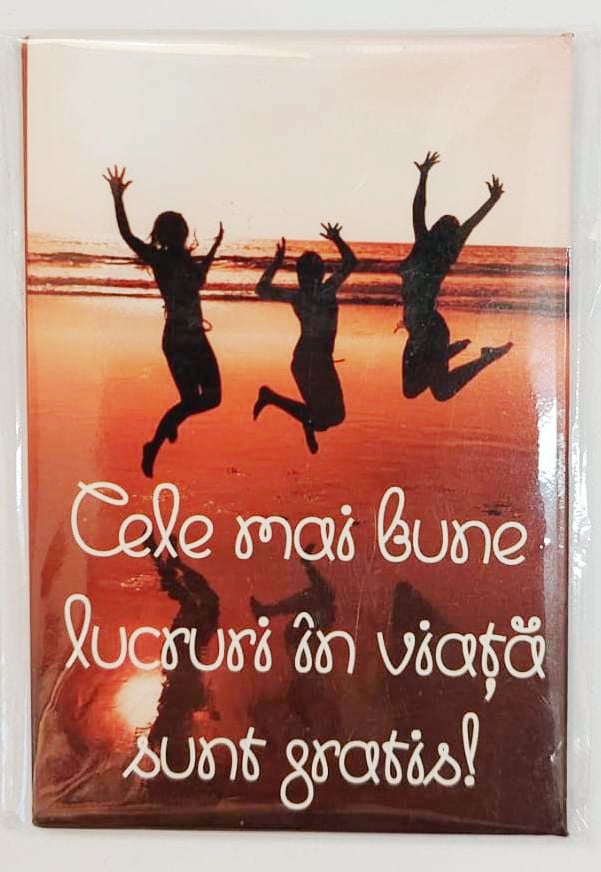 O colecție de magneți cu bază din metal cu finisaj printat, având imagini, desene, dedicații și texte drăguțe, din viața de zi cu zi.