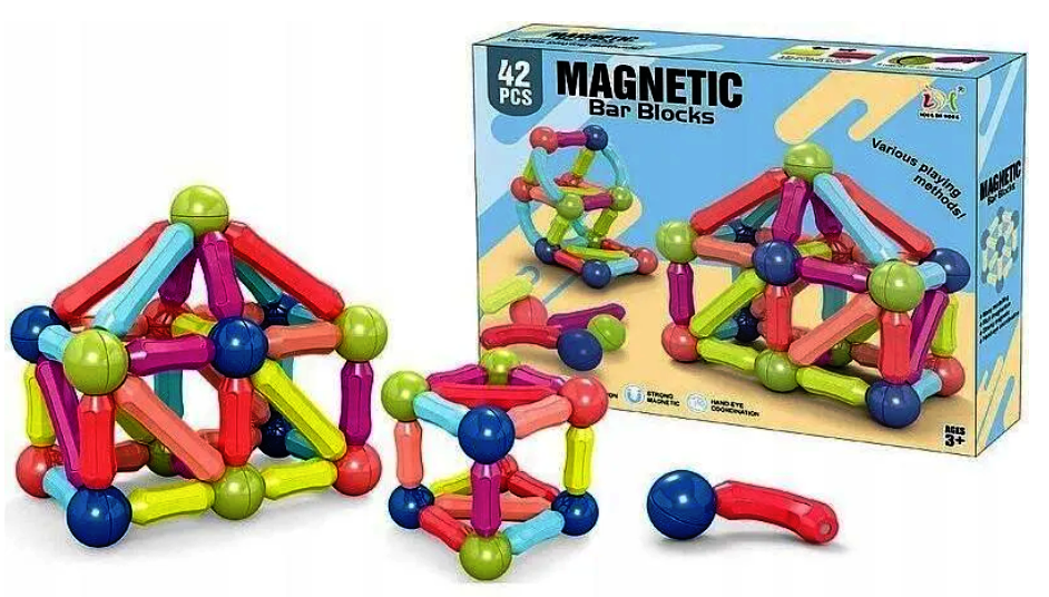 Jucărie pentru copii 3+, ideală pentru dezvoltarea creativității, coordonării și gândirii spațiale. Piesele magnetice (bile + tuburi drepte și curbate) se îmbină ușor pentru construcții 3D. Include 42 de piese + pliant, ambalate într-o cutie de 28*5.8*22 cm. Material sigur, cu magneți integrați ( + și -).