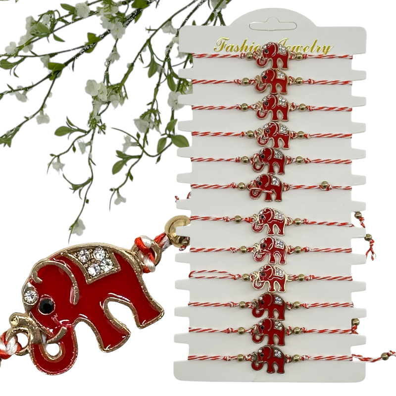 Mărțișoare en-gros Elefant – set de 12 brățări cu șnur împletit și închidere reglabilă